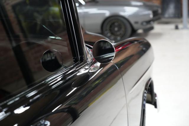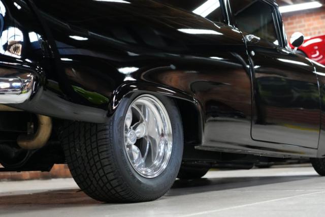 The body is laser-straight, shaved, tubbed, and smoothed to perfection. No trim. No distractions. Just pure black reflection laid over hours of meticulous prep and craftsmanship. Sitting on a full Art Morrison chassis, you\'ve got independent front suspension, coilovers, rack & pinion steering, and Wilwood 4-wheel power disc brakes-this car doesn\'t just go... it handles.