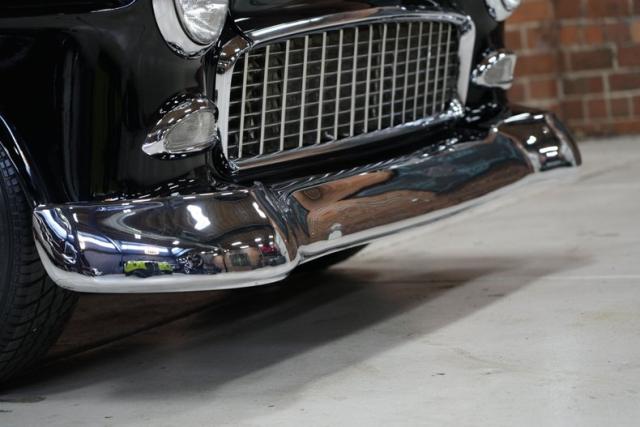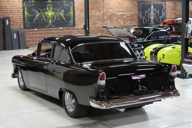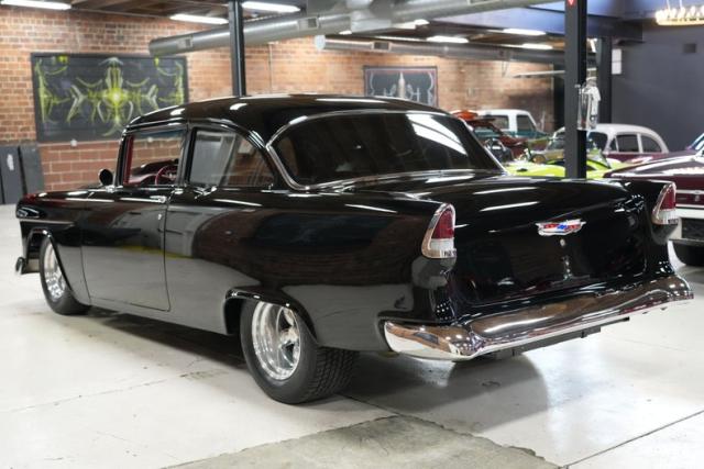 The 1955 Chevrolet 210 Custom \"Black Widow\" was built with one mission: to dominate the street while still cruising like a king. Crafted by Pro Street Customs out of Orlando, this car was ahead of its time-blending pro street aggression with pro touring comfort before the term even existed. The vision of Jere Broedling, this build started with a clean \'55 shell and turned into something that hits like a freight train and looks like a mirror rolling down the road.