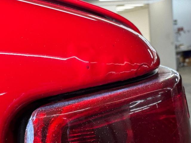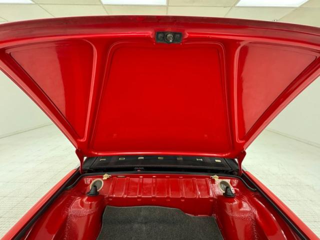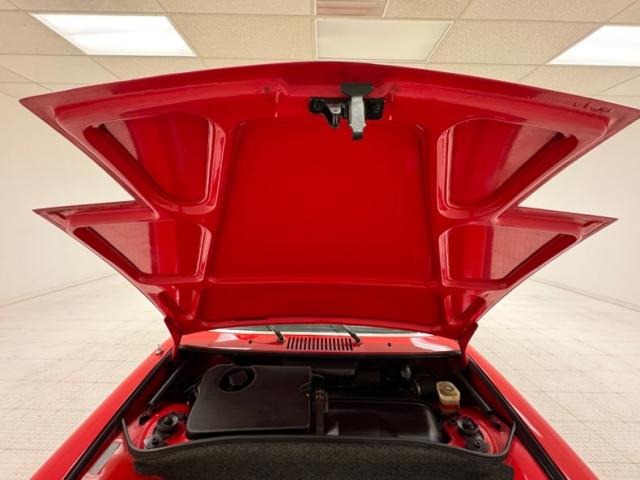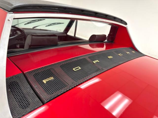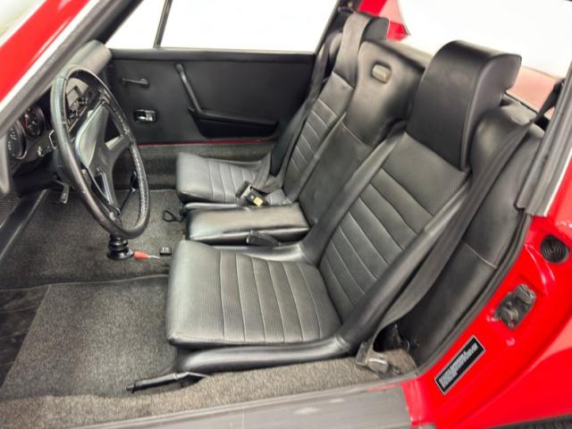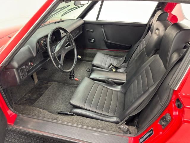 Two stage Bahia Red covers the car, a color that immediately gets attention, just before you notice the streamlined nose behind the smooth bumper that blends seamlessly with the front valance. Marker lights take the place of fog lights and all black is removed from the face. From the front fender to the rear fender, it\'s standard 914 with the black targa top, smooth door handles and overall diminutive profile. Out back, things get customized with a smooth rear fascia that blends with the quarter panels seamlessly while cutouts are provided on the valance for twin exhaust exits. The tail lights remain the same but take on a cleaner, more flush appearance the the new bumper, especially in red. 15-inch Minilite replica wheels carry 195/65R15 tires with a late 2019 date code. Areas of cracking paint and filler repair along with some bubbling and excess paint are noted as imperfections on the exterior.