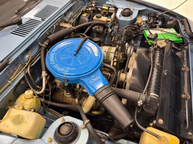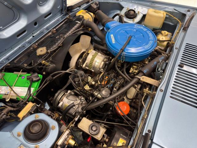 We find clean conditions under the hood and a 1146cc rotary engine with 103 horsepower and a Nikki 4-barrel carburetor. A 5-speed manual transmission sends power a short distance to the rear axle housing 3.909 gears. Power brakes are onboard with discs in front and drums in the back.