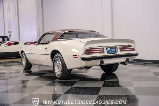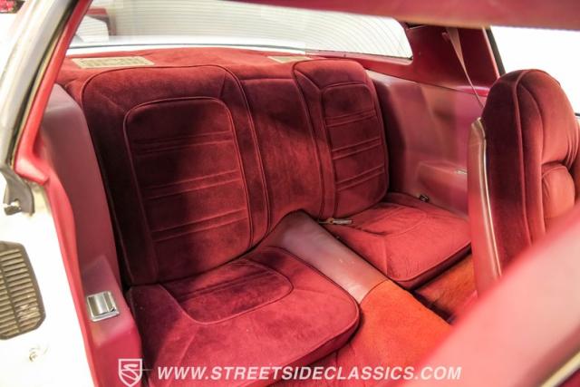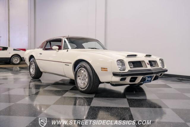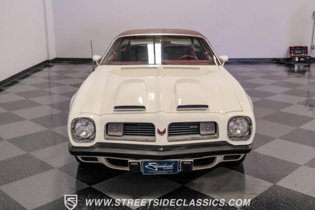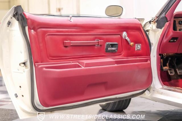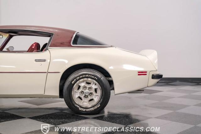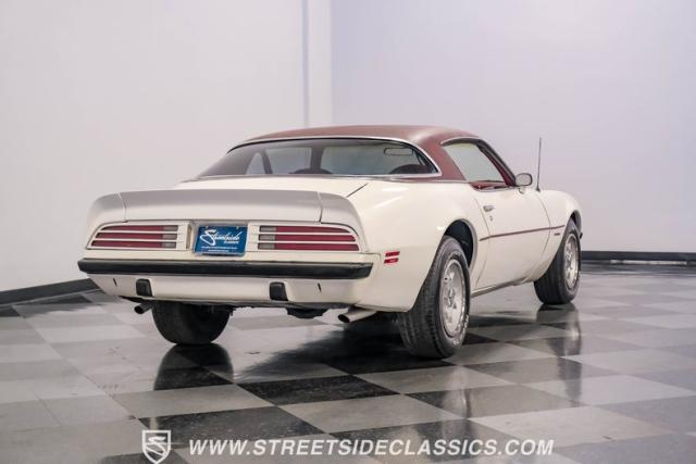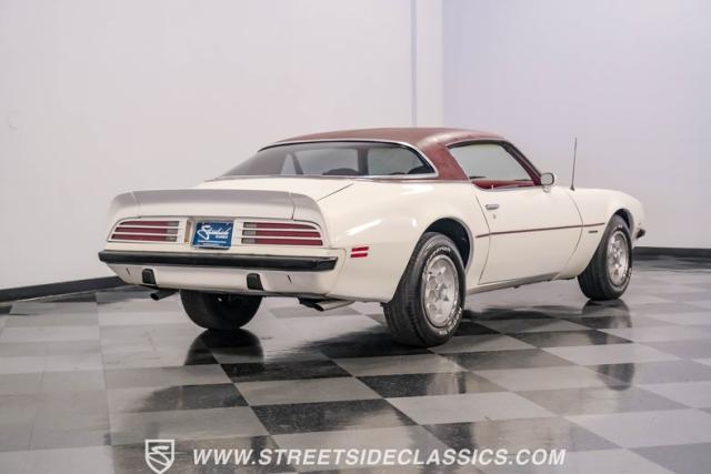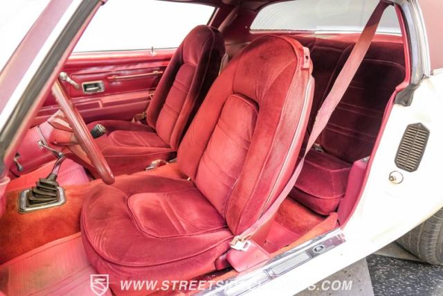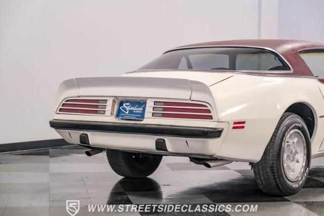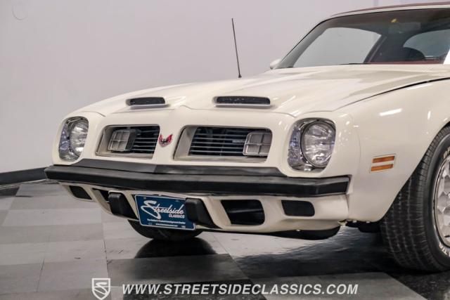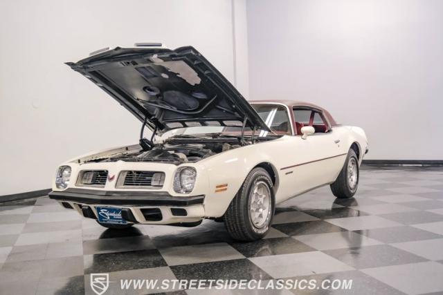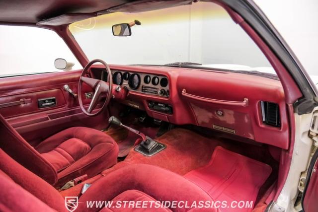 This 1975 Pontiac Firebird Formula represents the pinnacle of third-generation muscle car design. Sporting the coveted Formula dual-scoop hood and iconic honeycomb alloy wheels, this Firebird showcases the larger back window introduced that year, enhancing both style and functionality. Painted in factory correct Cameo White with a bold Honduras Maroon vinyl top, this Formula cuts an imposing figure on its BFGoodrich 225/70R15 tires, a combination that screams pure American muscle.