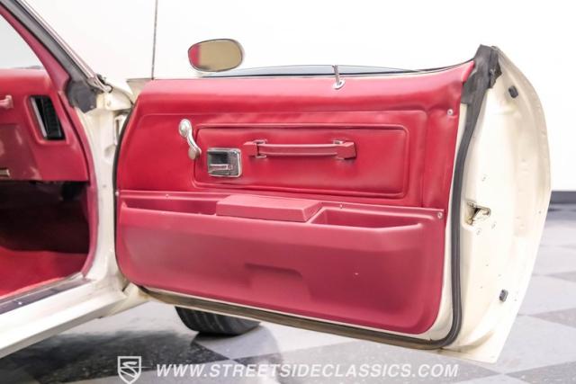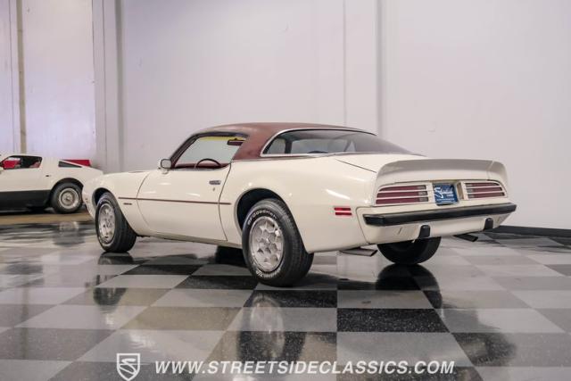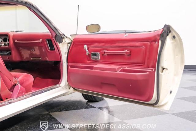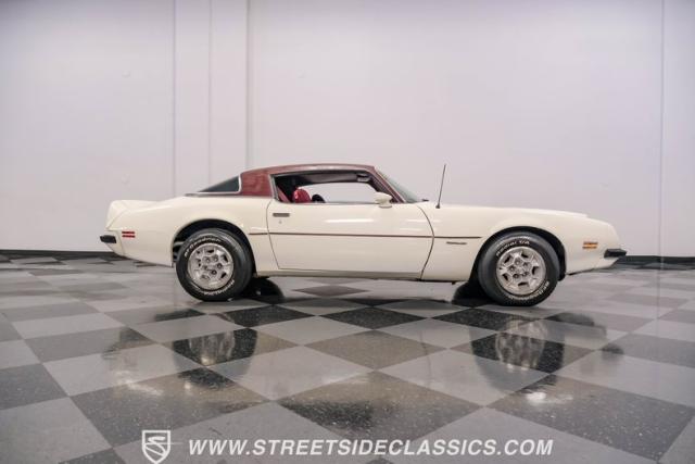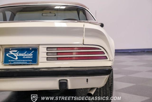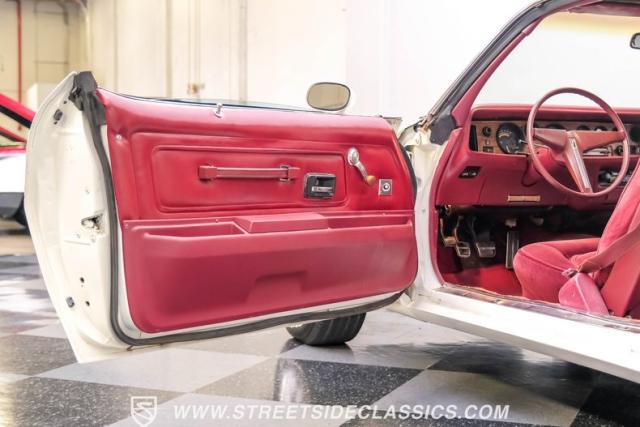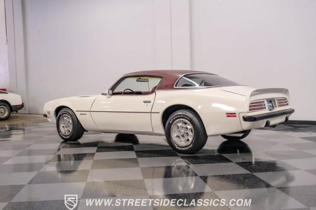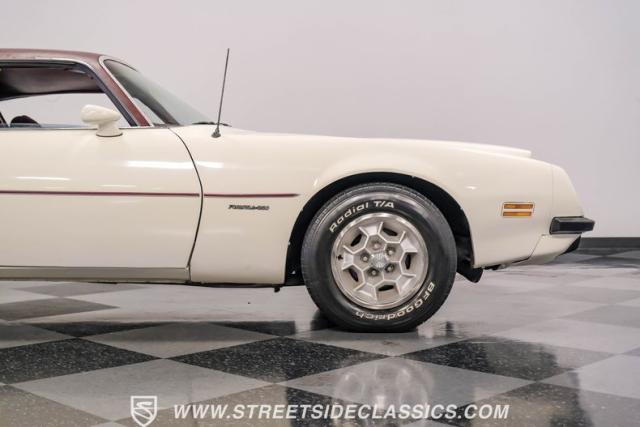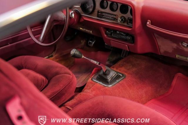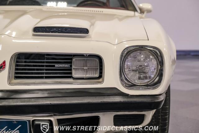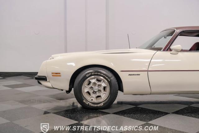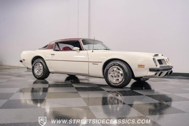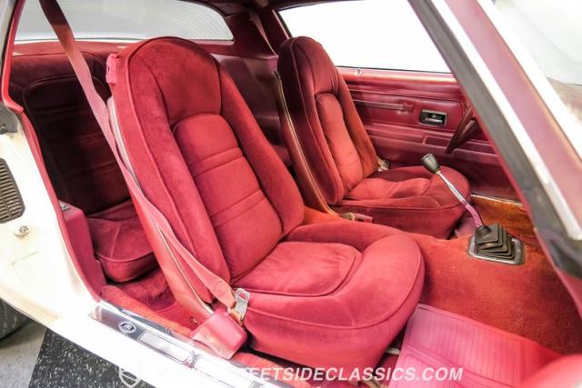 This 1975 Pontiac Firebird Formula represents the pinnacle of third-generation muscle car design. Sporting the coveted Formula dual-scoop hood and iconic honeycomb alloy wheels, this Firebird showcases the larger back window introduced that year, enhancing both style and functionality. Painted in factory correct Cameo White with a bold Honduras Maroon vinyl top, this Formula cuts an imposing figure on its BFGoodrich 225/70R15 tires, a combination that screams pure American muscle.