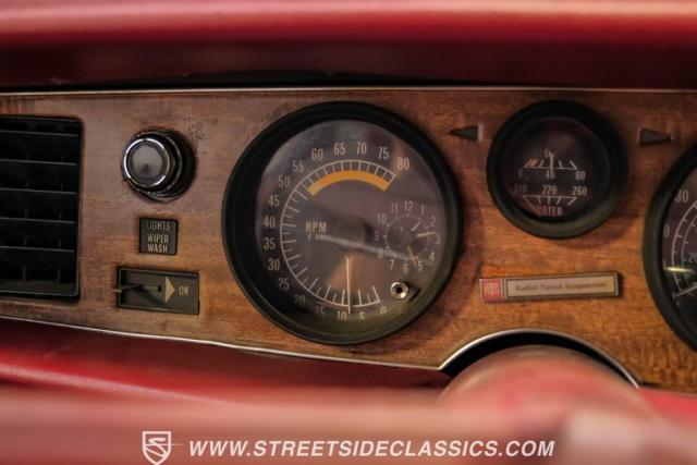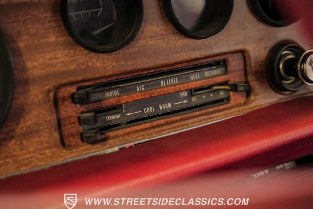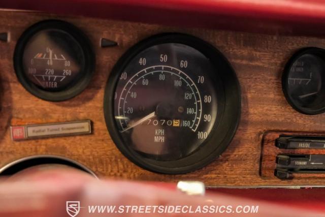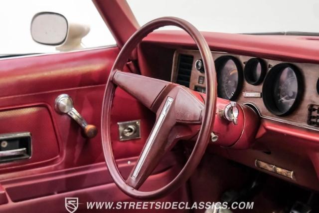 Open the door to reveal an inviting Oxblood vinyl interior that exudes 70s cool. Bucket seats provide comfort and support, while the floor-mounted shifter puts raw power at your fingertips. A freshly installed dash cap adds a modern touch to the classic cabin. Factory air conditioning is present but will need servicing to blow cold again and power steering makes for easy control while out cruising around. The purposeful layout of gauges and controls keeps the driver connected to the road and the machine.