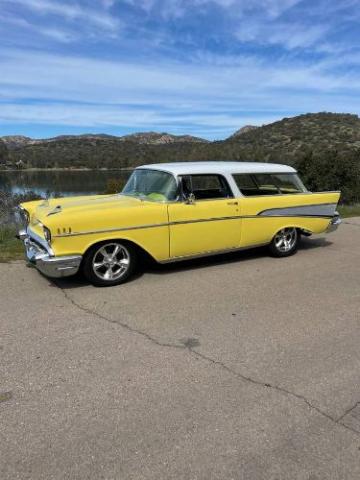 1957 Chevy Nomad rebuilt 350 mild cam 700R4 automatic transmission possi rear end Holly Sniper fuel injection Aluminum radiator electric fan ceramic coated headers vintage air conditioning all new dash trim new switches a clock that works vintage slide bar radio looks original electric windshield wiper kit all new glass and rubber new chrome n stainless new original carpets n 57s fabrics upholstery in 57 210 silver cobblestone and black vynal to go with the yellow top coats 18 rear 17 front American racing rims legends Brand New BFG radials White Halogen head lamps nw Chrome Bumpers Frame Off Fresh restoration powder coated original frame power disc brakes Drilled and slotted rotors power steering all new bushings balljoints tie rod ends Rich Dual H piped exhaust with sonic turbo flow mufflers Quiet type complete full finished Base coat clear coat Yellow paint Two Tone with White roof , 100 miles since the build Beautiful Car. Please Note The Following **Vehicle Location is at our clients home and Not In Cadillac, Michigan. **We do have a showroom with about 25 cars that is by appointment only **Please Call First and talk to one of our reps at 231-468-2809 EXT 1 ** FREE Consignment Visit Our Site Today Easy To List Your Vehicle and Get it Sold in Record Time.