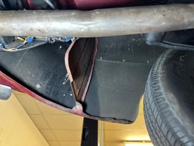 The consignor states that the previous owner had done all of the restoration with his wife, and the caring shows. Underneath we see rust free black painted steel and red floor pans with no road dirt on them. Transverse leaf spring suspension is found at both the fore and aft of the car to provide a comfy ride. Power drum brakes are seen all around to provide the woah when the time arises.