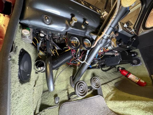 After opening the hood we are greeted with a massive clean and like new 255ci of 1950 Mercury flathead beauty. It has a Schneider Racing camshaft with a grind number of 248F along with a pair of Offenhauser aluminum heads toup the pony count. We note the chromed coolant tubes and a 12-volt electrical conversion done for easier starting, better lighting and a modern stereo. Also, the open air cleaner covering is chromed. Newer wiring is on as well as a firewall mounted oil filtering system. On top is a Holley 4-barrel carburetor, and on back a 3 speed manual transmission. The rear axle operates from 3.78 gears. Dual exhaust with stainless steel mufflers are now on.