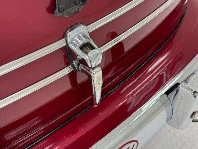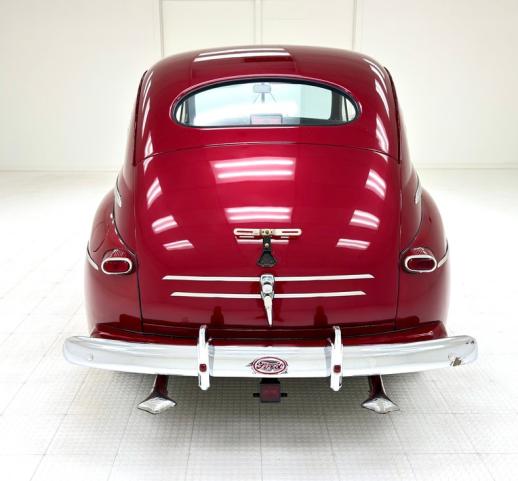 A deep red, chromed belt line arrows, chrome bumpers, chrome accented pontoon styled fenders, 2 door Deluxe sedan will live up to the phrase \"fanfare for the common man\". A nice set of original fenders, on all 4 corners, a split windshield framed in chrome, and a beautifully styled grille visually tell people you are to go to the front of the parade. Black wall tires mounted on red painted steel wheels and adorned with chrome hubcaps and dish edges keep you rolling down the road. All good glass and that nicely rounded rear and another curved chromed bumper below and we have a real original unmolested classic ready to cruise down main street.