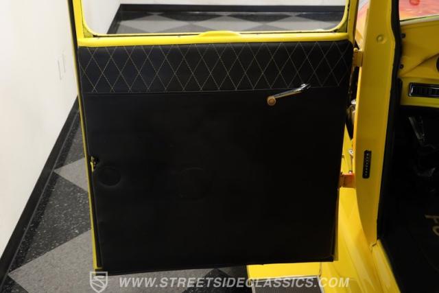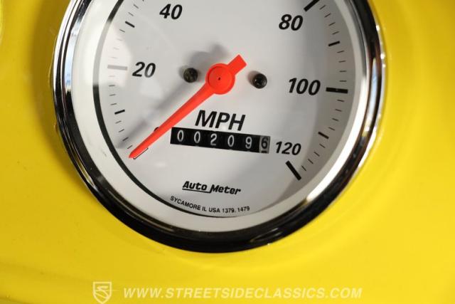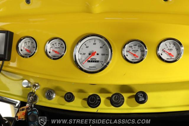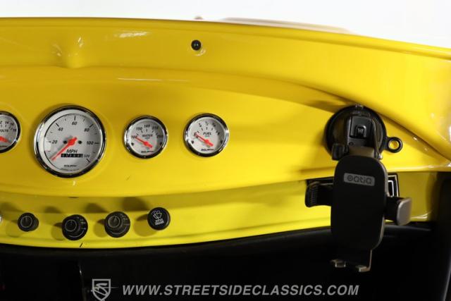 The interior keeps the excitement going, starting with automatic door poppers for easy access. Inside, you\'ll find well-kept door panels and bucket seats that are both comfortable and clean. The dashboard is painted to match the exterior and houses a set of AutoMeter gauges that are clear and easy to read. A quick-release aftermarket steering wheel connects to an IDIDIT tilt steering column, giving the driver a comfortable and customizable driving position. On the floor sits a Lokar automatic shifter, while above, a Sony AM/FM/CD stereo is mounted above the windshield. The carpets are in good shape throughout the cabin and trunk, and the trunk itself is clean, spacious, and ready for extra gear.