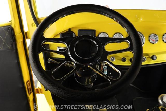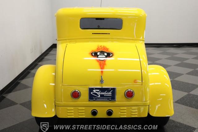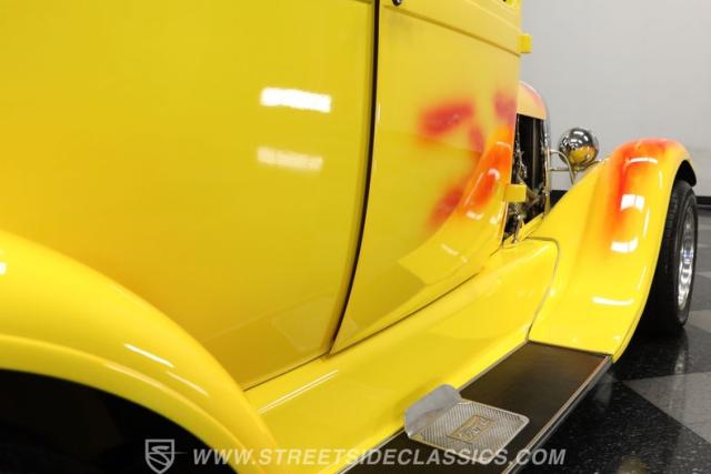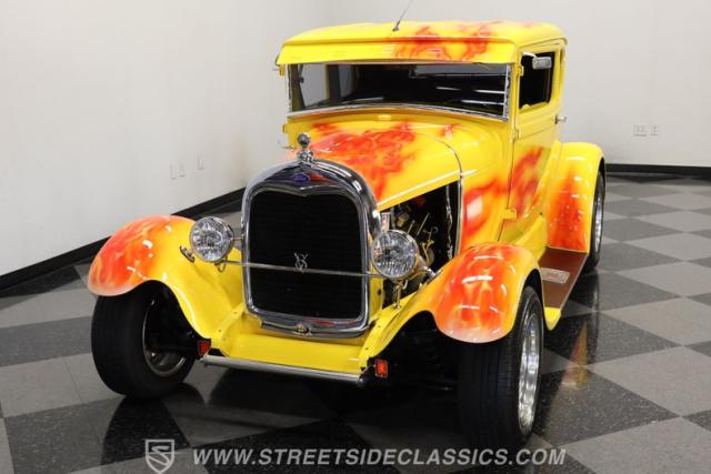 Custom hot rods like this have been admired for decades, and this 1929 Ford 5-Window Coupe hits the nail on the head. Finished in a bright yellow paint job with custom-painted flames, this all-steel classic demands attention wherever it goes. The chrome American Racing wheels give it a confident stance, while lightly tinted windows add just the right amount of attitude. Up front, the chrome grille and headlight bezels shine brilliantly and pair perfectly with the exposed engine bay. It goes without saying-this is one sharp-looking hot rod that\'s just as fun to drive as it is to admire.