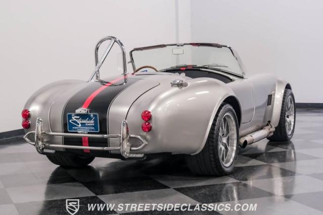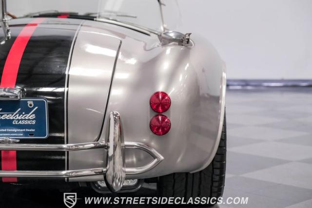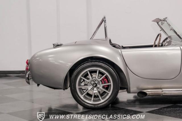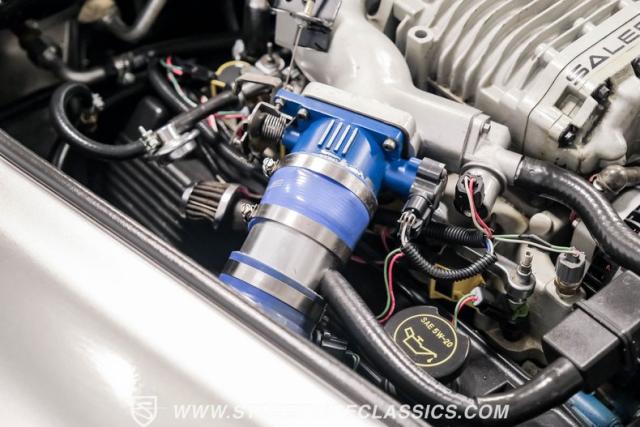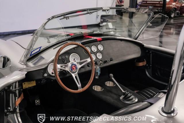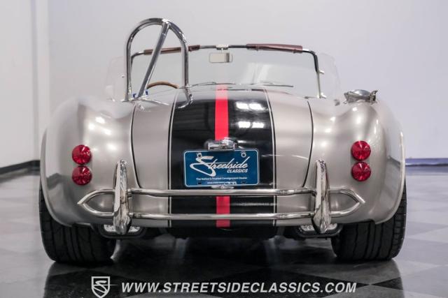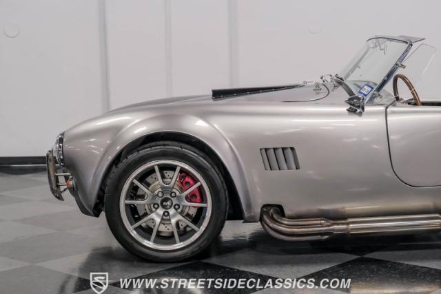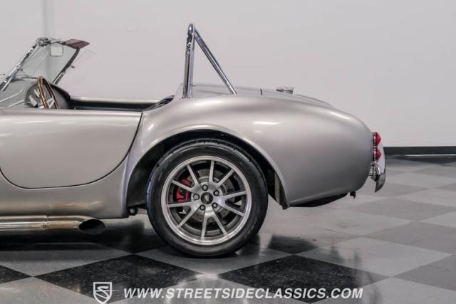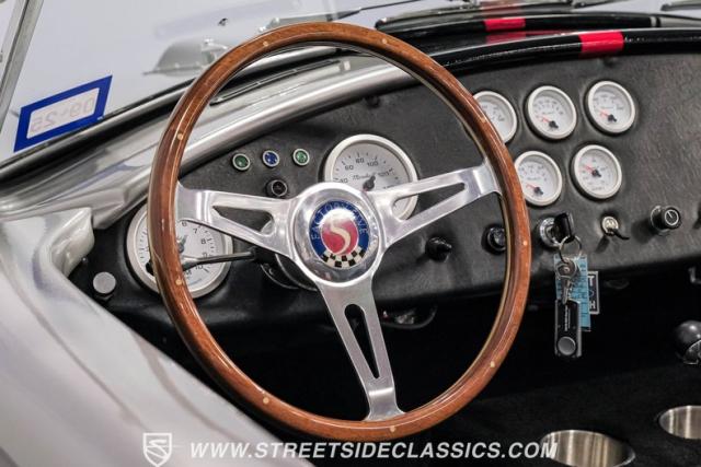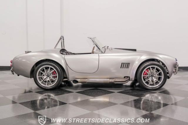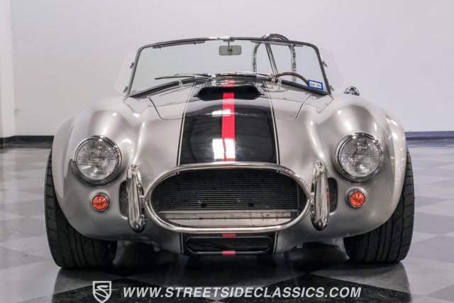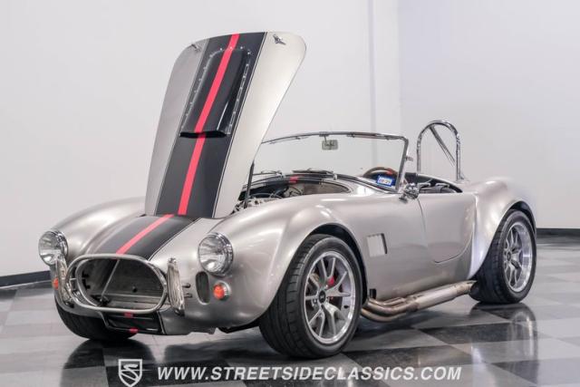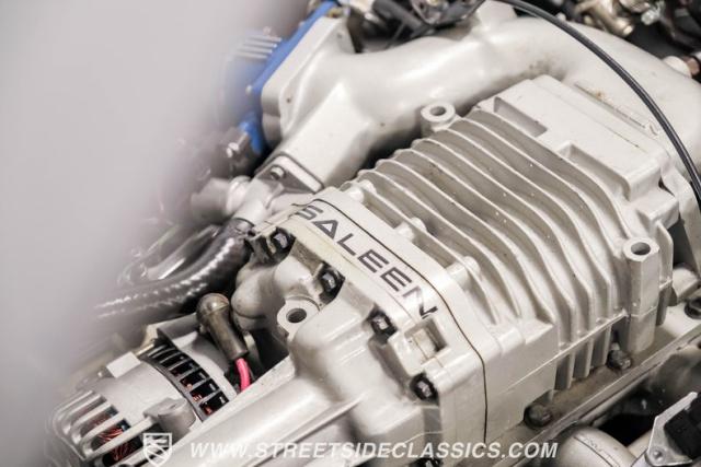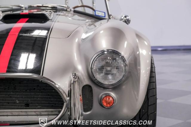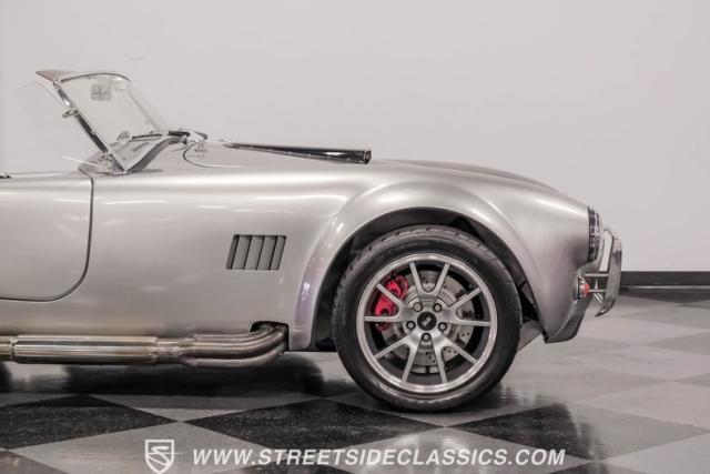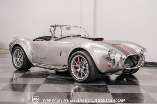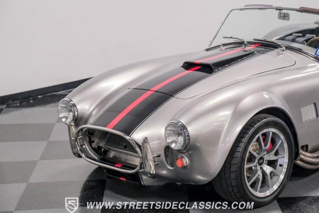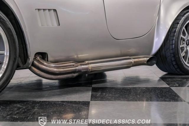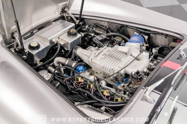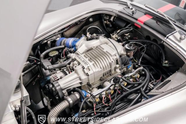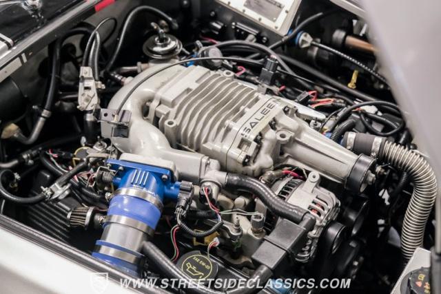 A supercharged 4.6-liter V8 engine, enhanced by Saleen, provides the Cobra\'s explosive acceleration. Power flows through a Tremec 3650 5-speed manual transmission, offering precise gear selection. The suspension combines tubular control arms and coilovers up front with a 4-link and coilover setup in the rear, balancing agility and stability. Four-wheel power disc brakes, supported by a hydroboost system, deliver strong, consistent stopping power. An aluminum radiator with electric fans manages heat effectively, while a Ron Francis wiring harness ensures electrical reliability under all conditions.