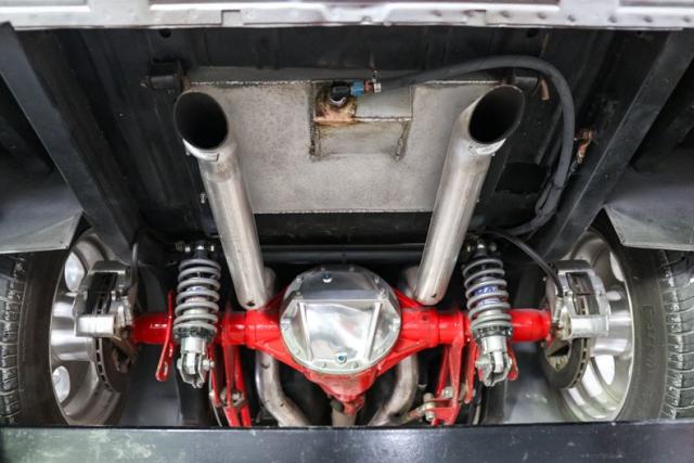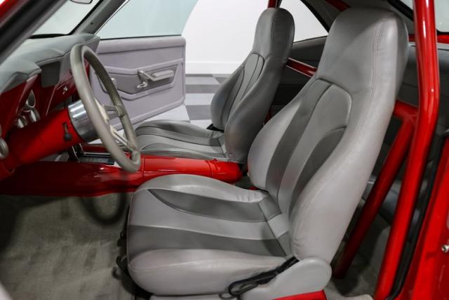 Handling and stopping power are top-notch, thanks to tubular upper and lower control arms, front coilovers, and Wilwood disc brakes on all four corners. The custom front subframe and subframe connectors add rigidity, while the manual rack and pinion steering and polished Colorado Custom wheels ensure responsive handling. The fiberglass cowl hood, chrome hood hinges and springs, and billet headlight rings add to its aggressive look, while the rear spoiler and roll bar emphasize its track-ready nature.