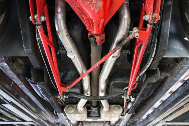 Inside, the custom Gray interior offers a blend of style and functionality. The bucket seats with a center console, leather-wrapped billet steering wheel, and Autometer gauges create a driver-focused cockpit. The billet aluminum pedal covers, billet inside door handles, and custom door panels add a touch of luxury. The rear seat delete and in-trunk fuel cell highlight its racing pedigree, while the horseshoe shifter and roll bar enhance safety and performance.