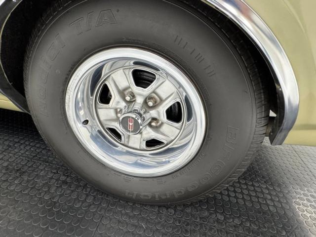 Presenting in a clean bay is a 350ci V8 from 1974 with a 4-barrel carburetor, mated to a TH400 3-speed automatic transmission. Power is routed to the 12 bolt rear axle with a consignor stated 3.42 gears and Positraction. Power steering, power brakes, and A/C are indicated by component presence in the bay.