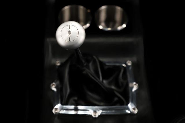 INTERIOR: Full custom interior that blends luxury with a sporty edge. The custom door panels and console are wrapped in genuine leather, while the seats feature black leather upholstery with diamond stitching including the ProCar Elite buckets in front. Sound deadener was installed under the black carpet, and it\'s finished with floor mats and new seatbelts. The wiring and fuse panel were completely replaced using an American Autowire kit. A Billet Specialties steering wheel is mounted on an Ididit tilt column, facing a set of HDX gauges. The dash features a custom wood trim bezel with matching inserts on the door panels. The center console houses the power window and door lock controls along with a Lokar floor shifter and cup holders. The sound system is serious: Phoenix Gold RX speakers, midrange drivers and tweeters in the doors, two 12-inch subwoofers, and a 6-channel 1,000-watt amplifier, all controlled by a Bluetooth stereo. It also features very nice digital climate controls plus a custom headliner and visors to finish it off.