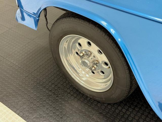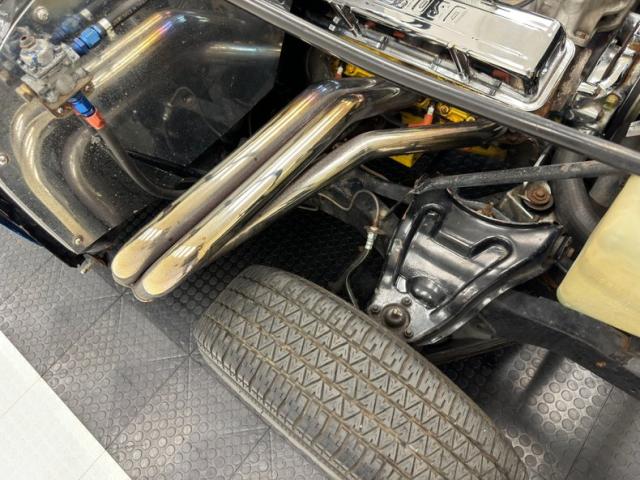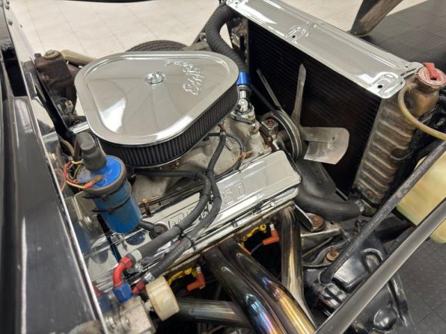 A 350ci V8 is under front clip, fueled by a Holley 4-barrel carburetor over an Edelbrock intake manifold. There are some chrome dress up components including the radiator cover and valve covers, while the headers are polished and flow like four chromed snakes on each side. A Muncie M20 4-speed manual transmission is married to the engine and sends power to the 12-bolt rear axle. Drum brakes are found at all four corners.