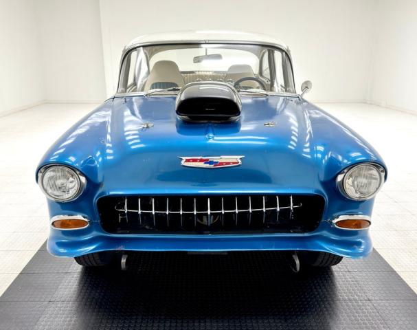 For consignment, a 1955 Chevrolet Bel Air 2 door sedan with, treated to a pseudo Pro-street treatment and if it wasn\'t for the massive rear wheels and ascendent hood scoop, this would be your standard issue \'55, at least while parked. Start it up and it instantly reveals its secret, this is not your family cruiser.