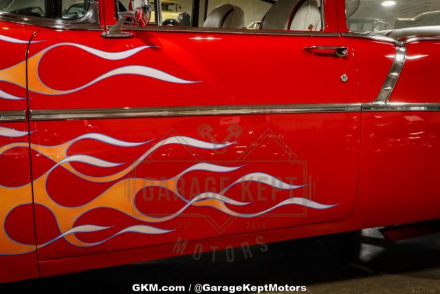 1956 Chevrolet Bel Air - California Car- Same Owner Since 1978- Complete Custom Build - 406ci V8- Cross Ram Intake- Dual Edelbrock Carburators- 700R4 Automatic Transmission- Red Exterior With Custom Flames- Red and White Interior- Extensive Service HistoryStep back in time with this stunning 1956 Chevrolet Bel Air, a true icon of American automotive history, now available at Garage Kept Motors. This classic beauty is not just a car; it\'s a piece of art, a testament to the golden age of motoring, and a symbol of timeless style and performance.This particular Bel Air is a California car, cherished and meticulously maintained by the same owner since 1978. Its long-term ownership is a testament to the love and care it has received over the decades. The vehicle comes with a wealth of receipts, documenting its history and the extensive work that has gone into making it the masterpiece it is today.Under the hood lies a powerful 406ci V8 engine, a complete custom build that promises exhilarating performance. The engine is equipped with a cross ram intake and dual Edelbrock carburetors, ensuring optimal power delivery and a thrilling driving experience. Paired with a 700R4 automatic transmission, this Bel Air offers both power and smoothness, making it a joy to drive whether you\'re cruising down the highway or taking it to a car show.The exterior of this Bel Air is a showstopper, featuring a vibrant red paint job adorned with custom flames that add a touch of flair and individuality. This unique design is sure to turn heads wherever you go. The interior complements the exterior with a striking red and white color scheme, offering a classic yet bold look that captures the essence of 1950s Americana.The 1956 Chevrolet Bel Air is an exotic class car, celebrated for its iconic design and cultural significance. What makes this particular Bel Air special is its combination of classic charm and modern performance enhancements. The custom build, featuring a powerful 406ci V8 engine and unique styling elements, sets it apart from other classic cars. It\'s a vehicle that not only captures the spirit of the 1950s but also offers a driving experience that is both nostalgic and exhilarating.This 1956 Chevrolet Bel Air is more than just a car; it\'s a piece of history, a collector\'s dream, and a testament to the enduring appeal of classic American automobiles. Don\'t miss the opportunity to own this exceptional vehicle. Visit Garage Kept Motors today to experience the magic of this timeless classic.
