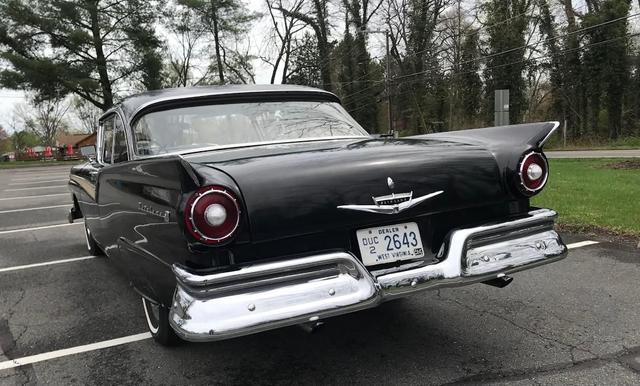 1957 Ford Fairlane 500 two door hardtop with 292 cu in V8 engine, automatic transmission, fender skirts and more. A nice original southern car with a straight body and solid undercarriage. Runs out very good and dependable. You can find a ton of 57 Chevy's, but the Ford's are much harder to find.