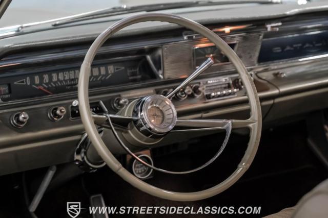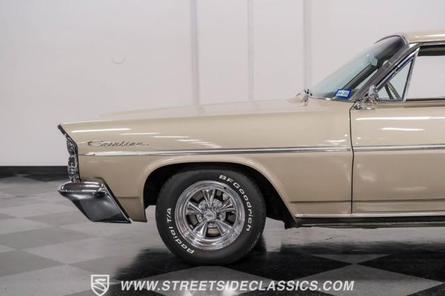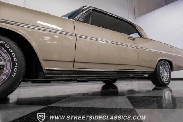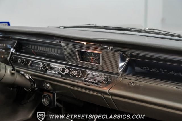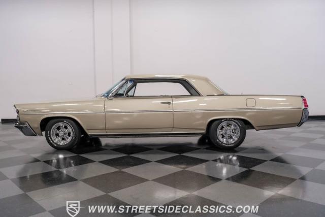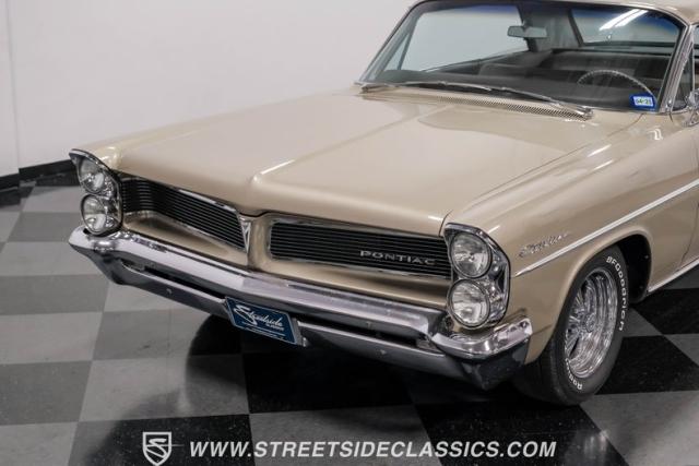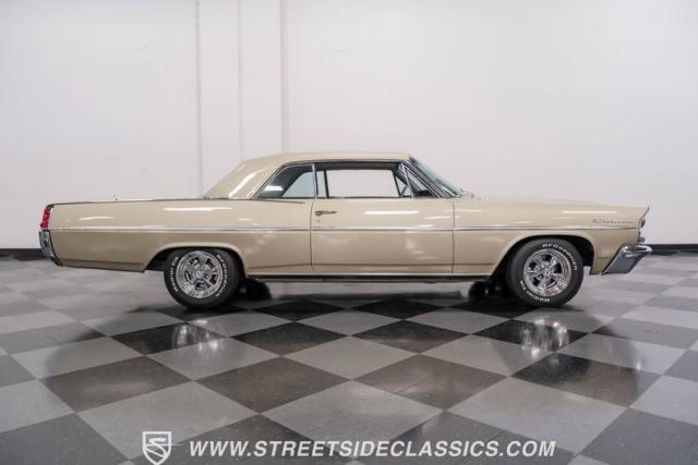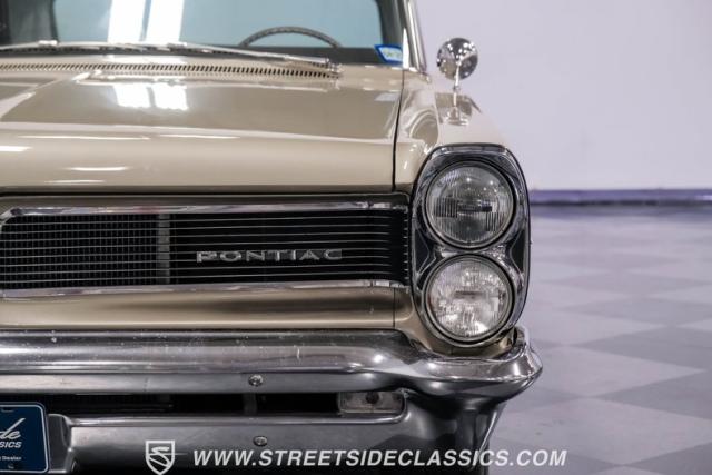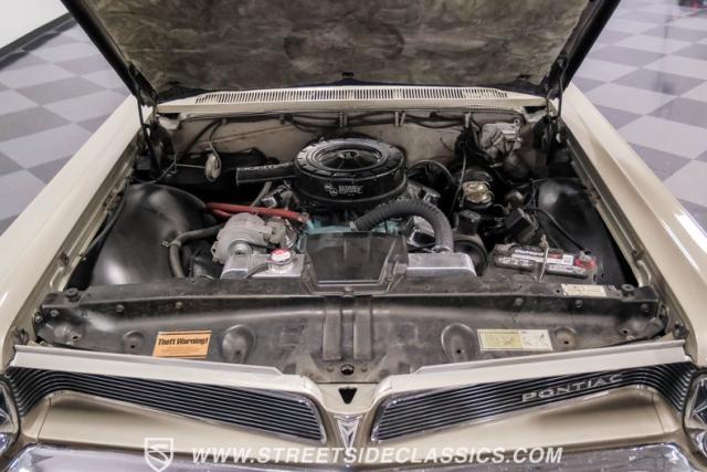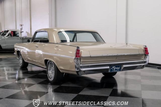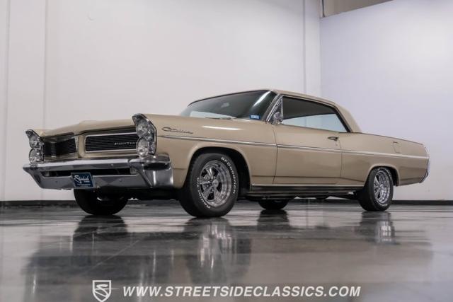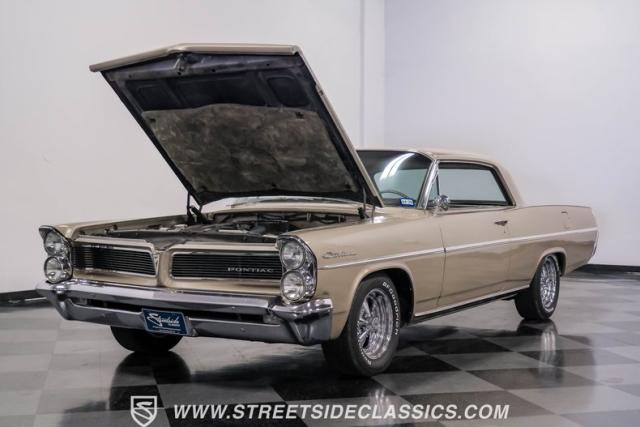 This 1963 Pontiac Catalina is a remarkable automobile having what is believed to be just three owners in its history. In fact, it has spent the last year undergoing a thorough reconditioning and now sits ready to enjoyed to the fullest. The Caravan Gold repaint, completed in January 2024, showcases it\'s original shade, and while it originally had an Ivory painted roof, we can\'t argue with the Catalina\'s fresh bold look with crisp lines and flowing curves. Chrome Cragar wheels provide an aggressive look, wrapped in fresh BF Goodrich 215/65R15 tires on all four corners. The exterior details shine through with the dual exhaust outlets punctuating the rear view, while the power antenna adds a luxurious touch. A fresh dual exhaust system amplifies this Pontiac\'s road presence.