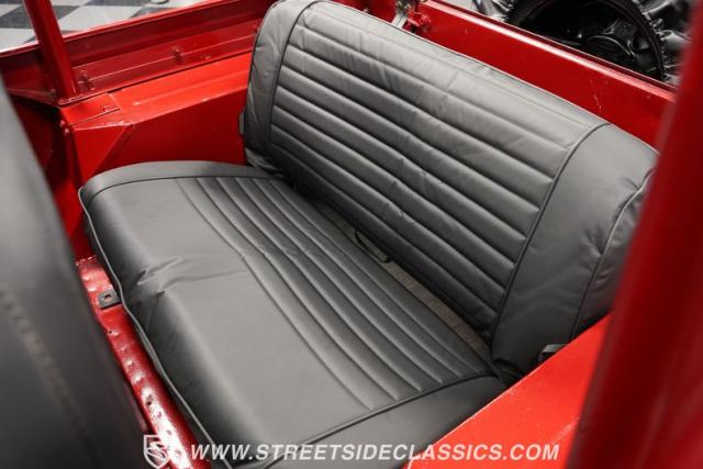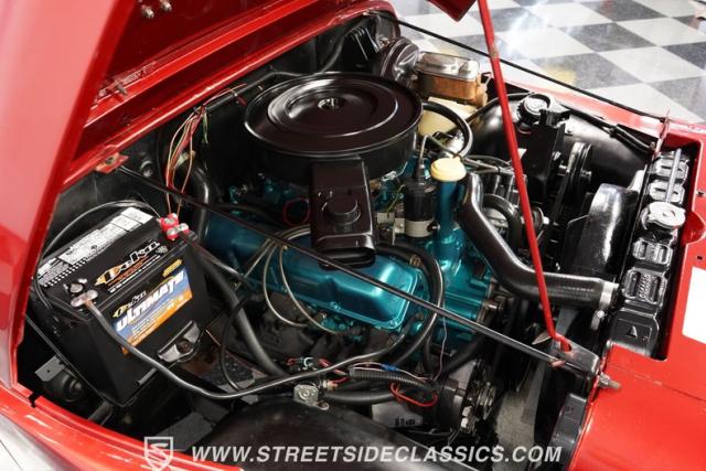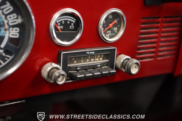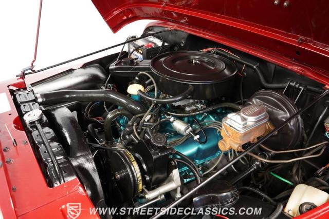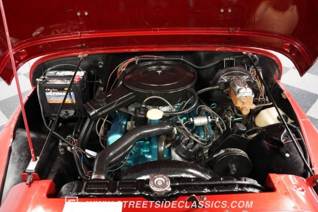 A freshly rebuilt 304 CI V8 engine powers your journey, eager to conquer any obstacle. The 3-speed manual transmission and transfer case give you precise control over rough and smooth terrain. A new 2-barrel carburetor ensures efficient fuel delivery; whether crawling over boulders or cruising down the highway, this classic Jeep is a blast to drive. Front power disc brakes provide confident stopping power, even when loaded with camping gear. The dual-to-single exhaust system produces a throaty rumble that echoes off canyon walls. This clean engine bay showcases the mechanical heart of your all-American adventure machine.