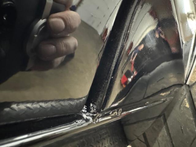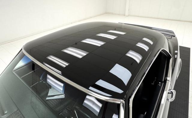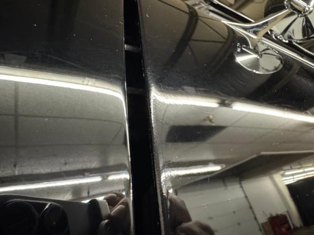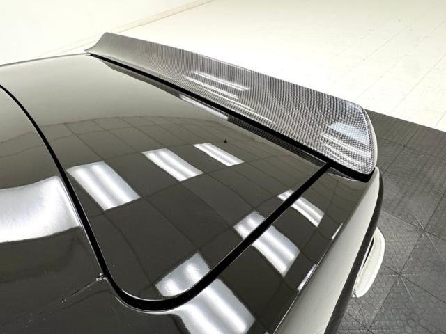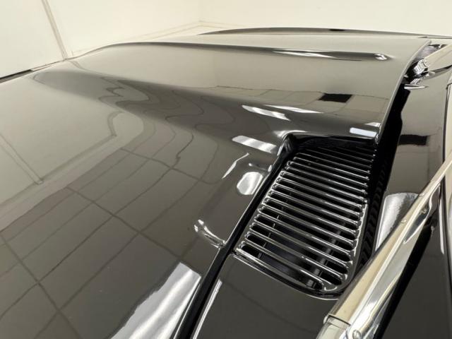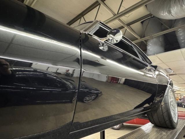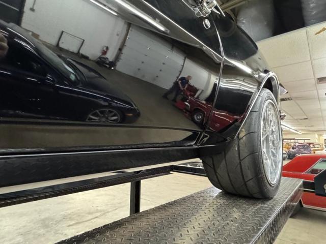 The spectacular exterior begins with two stage Tuxedo Black paint that reflects deeply and is contrasted by the bumpers that embrace the ends, the trim that surrounds the cabin, and by bright bezels that frame the two part tail lights. The fiberglass cowl hood is just the right height, balanced by the carbon fiber spoiler in back. There\'s a carbon fiber chin spoiler too, and it perfectly mirrors the angles of the grated grille which also features just the right amount of trim. Billet Specialties wheels occupy the corners and look light and fast while showcasing the slotted and drilled Wilwood brakes behind. Deep paint and great metalwork gave us a hard time finding imperfections. In fact, the only two include some slightly rough surface on the door edge and a slight gap issue in the corner.