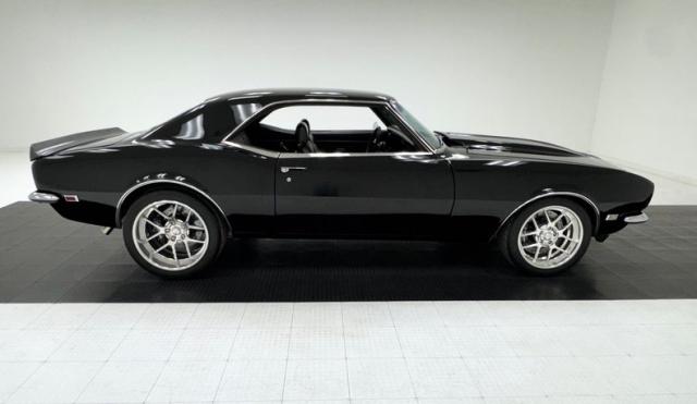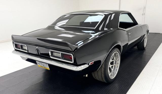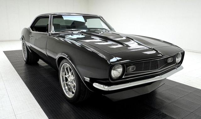 For consignment, a 1968 Chevrolet Camaro hardtop showing 54,929 miles, but the true miles are unknown due to a title exemption. This may have been born a six cylinder sport coupe commuter car, but it\'s been to the gym and now presents as a muscular Pro-Touring edition with all the agility of a black mamba.