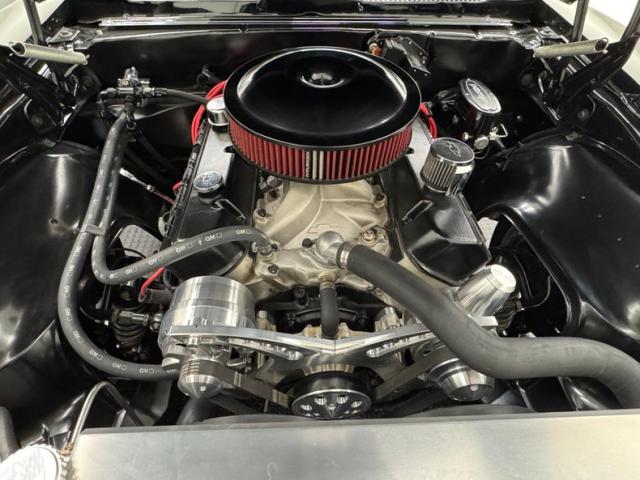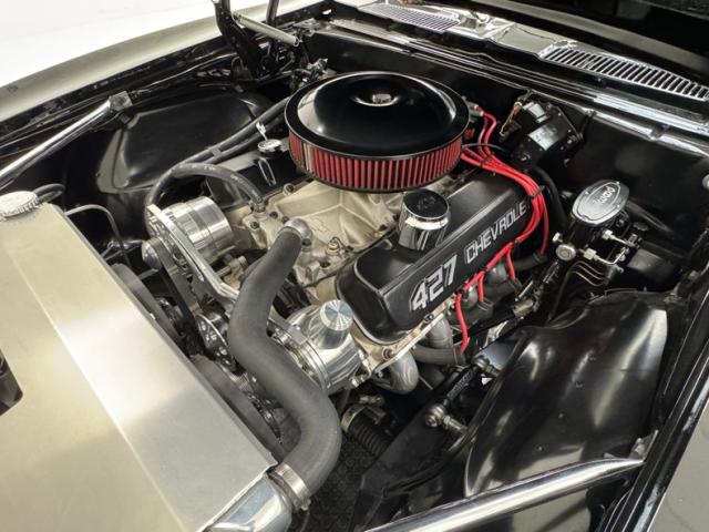 The clean party continues under the hood where we find the 427ci V8, a GMPP ZZ427 crate engine rated at 430 horsepower, no doubt aided by the GMPP aluminum heads it wears and the Holley Street Avenger 4-barrel carburetor. A TH400 3-speed automatic transmission is mated to it and power is routed to the Fab 9\" housing with a Detroit Tru-Trac posi rear end and 3.55 gears. Polished parts, headers, clean paint, and some red highlights make this spotless engine bay show worthy and go ready!