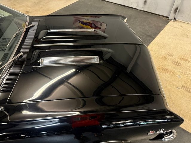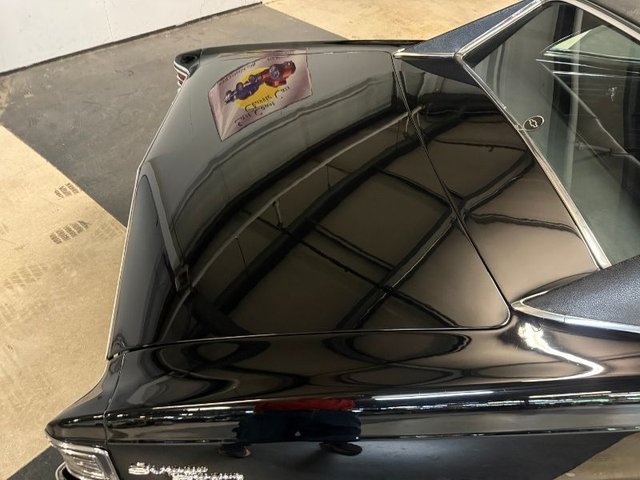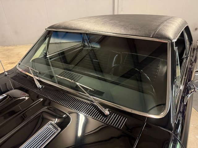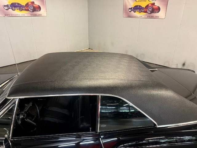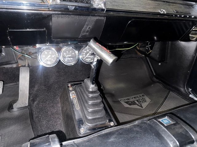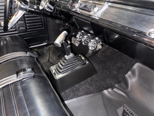 Black interior on a bench seat, back seat, door panels, headliner, Sunvisor’s, arm rest and bases, carpet, dash pad, woodgrain on dash, dash cluster, Autometer gauges in stainless cluster, Summit tach, steering wheel, horn ring with SS button, B&M shifter in console all like new. Seat belts front and back like new. Factory AM Delco radio, dash vents for A/C mounted in dash. Rear view mirror, package tray all like new. Beautiful inside.
