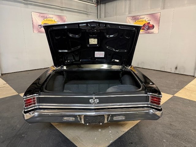Powered by a 396 CI with 525 HP, 350 transmission, Offenhauser aluminum intake with 2-4's Edelbrock carb, aluminum valve lovers, chrome small K&N air cleaners, Hooker headers, chrome power steering pump, electric water pump and fan. Aluminum radiator, upper and lower Coolflex water hoses with chrome ends. Chrome timing chain cover, chrome alternator, brackets chromed, chrome water neck, chrome oil dip stick, MSD ignition and wires with covers. Stainless fuel lines with Russell fittings, chrome master cylinder, polished overflow tank, chrome hood hinges, chrome hood latch electric cutouts, 3" exhaust, Manual front disc brakes with stainless lines. Delco battery cover. Visit our website at www.ecoastcc.com for more info.