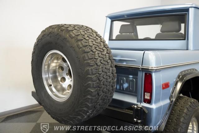 Forged for the wild, this 1970 Ford Bronco Half-Cab 4x4 comes coated in Brittany Blue paint. Ford created something special with the sought-after half-cab configuration - a rugged blend of open-air utility and all-terrain capability. A 3.5-inch suspension lift combined with a 1-inch body lift gives this American classic its tall and mighty profile. Aluminum 15-inch wheels sit at all four corners, wrapped in massive 33/12.50/15 BFGoodrich KO2 all-terrain tires for ultimate traction. Aftermarket fender flares accommodate the wider rubber while the custom rear bumper houses a full-size matching spare, ever-ready for backcountry exploration.