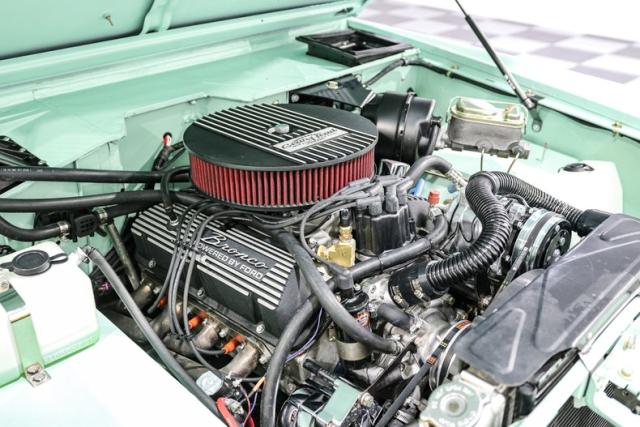 Under the hood, this Bronco steps well beyond stock. A Blueprint 306ci V8 delivering 390 horsepower pairs with Holley Sniper EFI, an aluminum intake, and stainless long tube headers to create a combination that fires instantly and pulls hard. Cooling is handled by an aluminum radiator with electric fan, while a fresh AOD automatic overdrive transmission makes highway driving smooth and effortless.