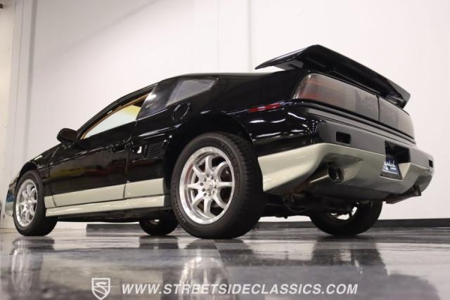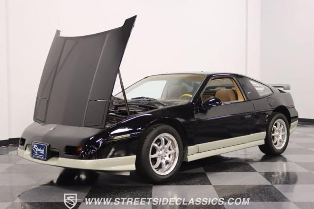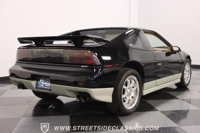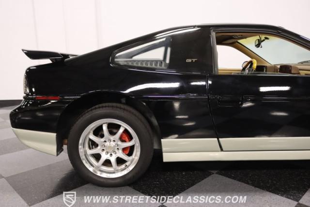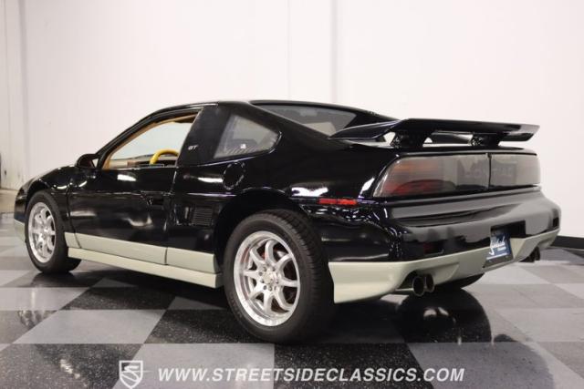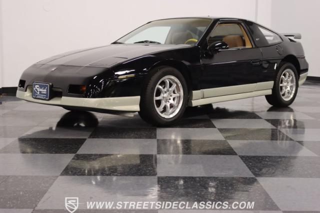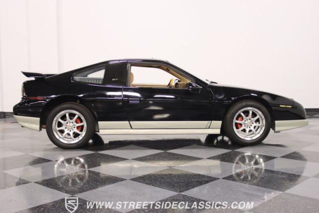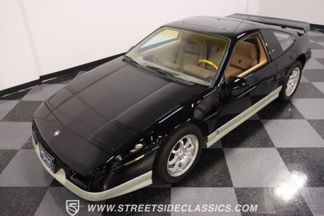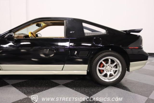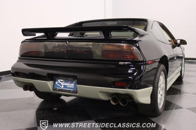 If MTV were a car, this is it! This 1987 Pontiac Fiero GT, is a vehicle that encapsulates the spirit where boldness and innovation took center stage. Sporting a sleek black exterior accented by a subtle silver base, this coupe is a head-turner from every angle. The silver sport 16\" wheels, enveloped in tires with good rubber, anchor its stance with authority, complemented by the sporty allure of its dual exhaust system. With hints of its past life as a canvas for exotic kit-car transformations underscore its innate versatility and exotic flair.