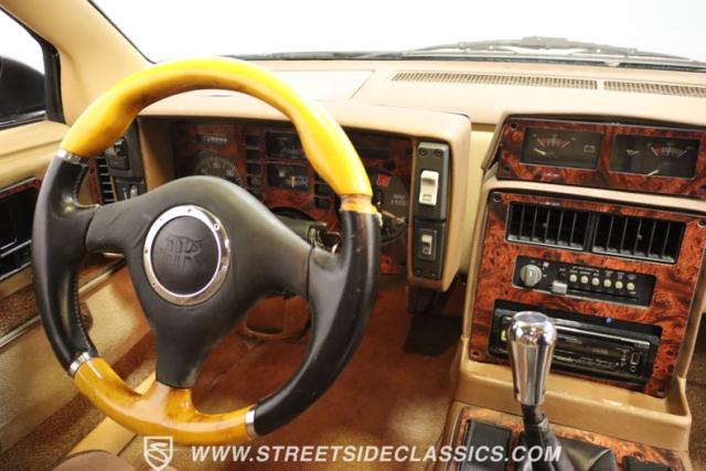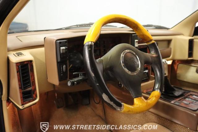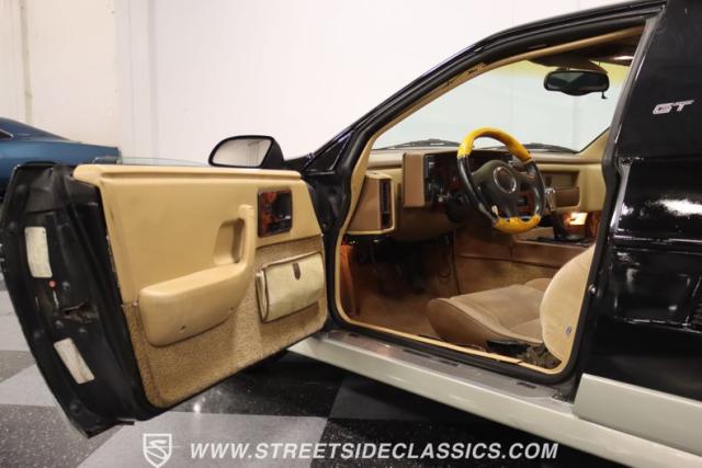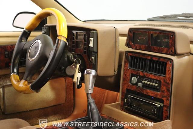 This Fiero GT\'s tan interior is where plush bucket seats meet the era\'s cool. The dashboard features a Kenwood head unit with Bluetooth get your mixtape (CD) ready to roll. A slick short throw shifter adds a touch of flair, and the sunroof opens up to the sky above. With wood veneer accents and a cluster that\'s \"all systems go,\" plus AC to keep things chill and an aftermarket steering wheel to grip, it\'s like your favorite retro track, remixed for the road.