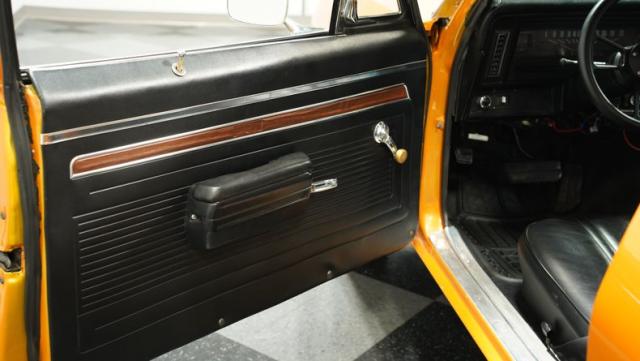 Under the cowl induction hood lurks a healthy 454 cubic inch big block engine mated to a TH350 3-speed automatic transmission. The engine bay features power steering, power brakes, electronic ignition, electric fan, a serpentine belt system, long tube headers and an aluminum intake manifold topped with a Edelbrock carburetor and chrome Edelbrock open element air cleaner.