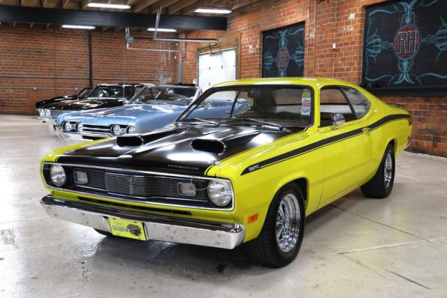 Immerse yourself in the thrilling realm of classic American muscle with this jaw-dropping 1971 Plymouth Duster, a true legend that has been meticulously updated to deliver an exhilarating driving experience. This stunning vehicle seamlessly blends vintage allure with modern enhancements, showcasing both timeless style and heart-pounding performance. Accompanied by the original broadcast sheet, this Duster stands as a testament to its authenticity, flaunting a select few factory options that accentuate its classic design.