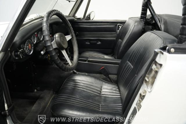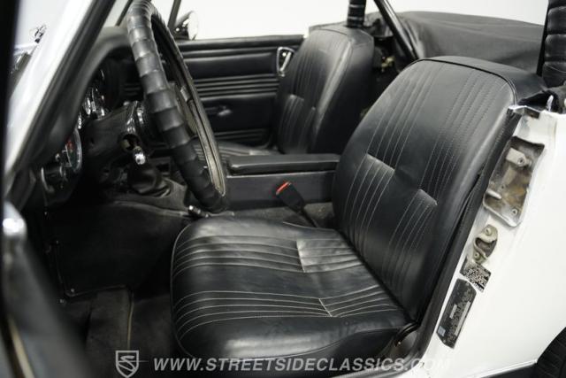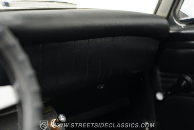 Inside, the MG Midget offers a cozy yet stylish cabin, featuring black vinyl bucket seats that have been fully replaced for comfort and durability. The interior boasts a clean look with minimal wear on the usual touch points, complemented by newer carpeting and a crack-free dash. Modern updates include a Pioneer head unit for your entertainment and the relocated key cylinder to the center stack, blending classic charm with practical enhancements.