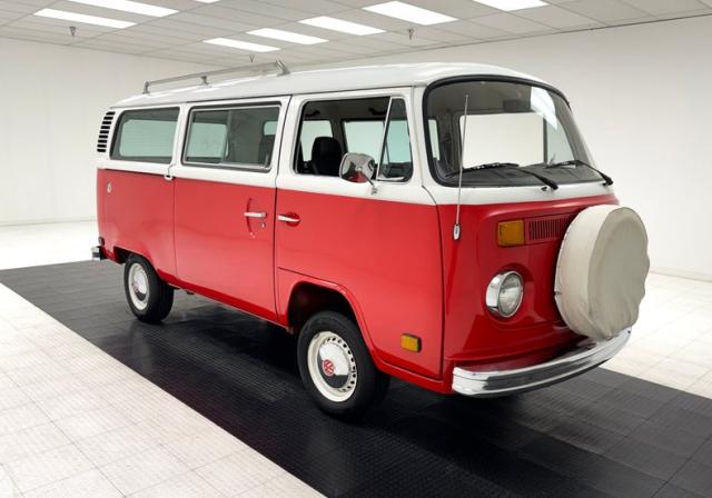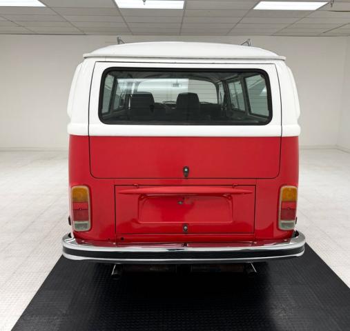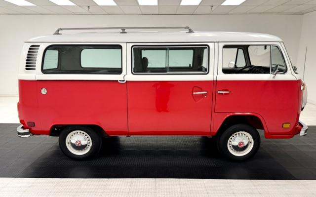 Mistaken for no other vehicle, the distinctive Type 2 is an upright and narrow ride with a dramatic two color paint scheme, in this case Mars Red under Alpine White, augmented by white painted 14-inch wheels with chrome hubcaps and red VW logos, a nice touch. Up top is a roof rack, adding to the chrome tonnage that include front and rear bumpers, light rings, and polished twin exhaust tips underneath. Long windows create an open greenhouse and the ribbed intake ducts behind them add character to this slab sided wagon, while wheel openings that vary in size create more visual interest. It\'s all in very nice shape and imperfections noted include some chips that have caused exposure and surface rust, rough paint in seams, blistering over a rear wheel and various other places, evident filler patchwork near front bumper, a dent in a hubcap, and bubbling of the black detail on the bumper.