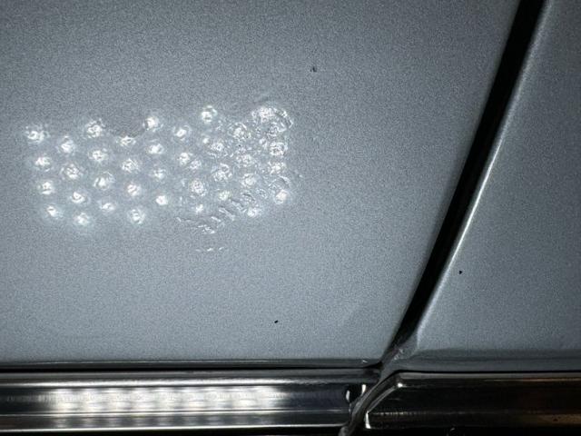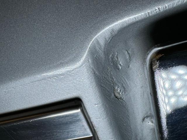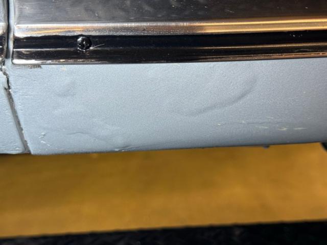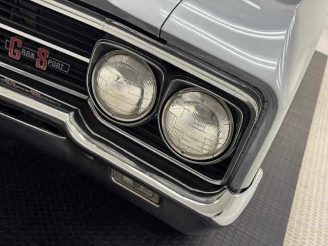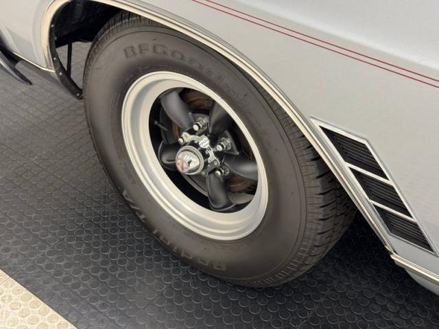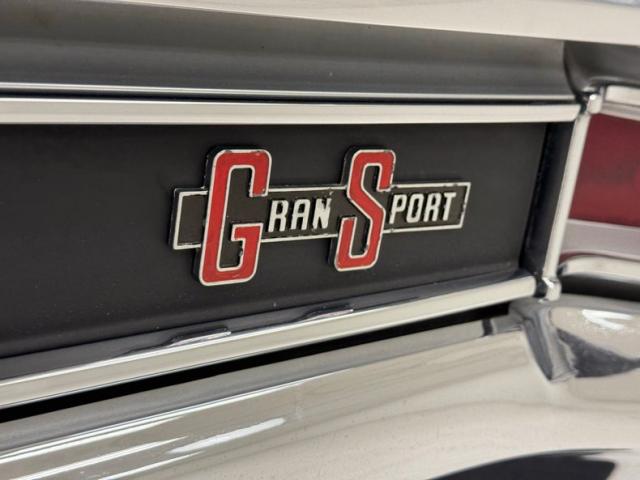 Two stage Silver Mist on the body is complemented by Regal Black on the roof which is a great design element to pick up the black wheels, faux fender vents, grille, and faux hood scoops. The handsome lines and vertical fascia of the mid size offerings from GM are exemplified on this car, looking both muscular and at the time, probably run of the mill. An epic Gran Sport emblem sits to the right on the black band of the tail and the simple taillights contour beautifully to the body lines and subtle angles of the car. With the red in the GS emblems and that of the taillights, the red double pinstripe that travels the length of the car at the mid panel level is a nice feature. Flying buttresses on the C-pillar are another feature that makes this car stand out in design. The paint and metal are very nice on the car with imperfections noted such as bubbling paint and small areas of painted filler that\'s not smooth, none glaringly obvious.