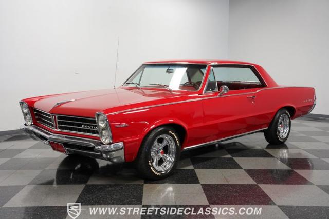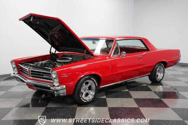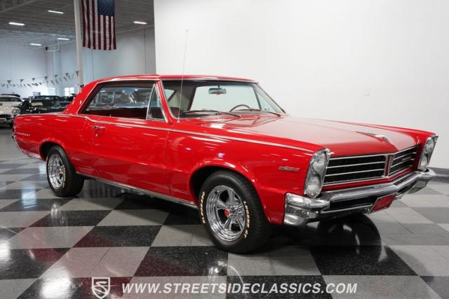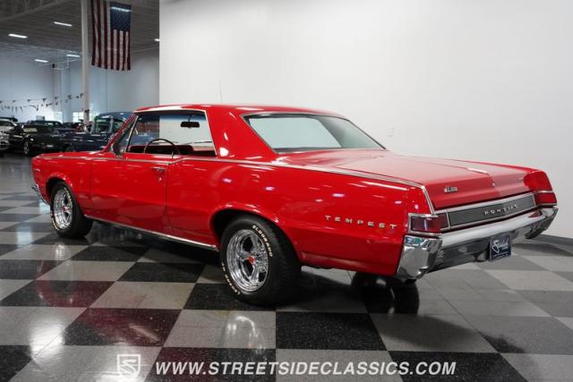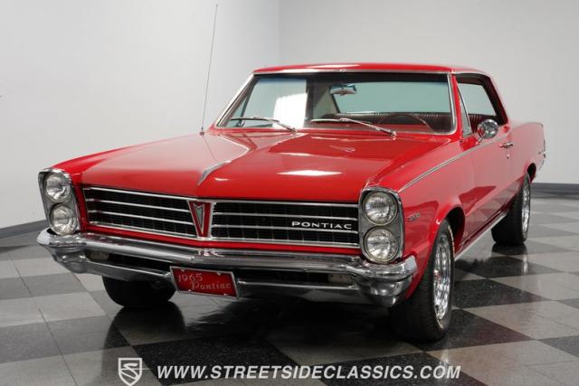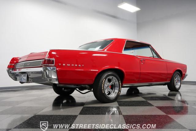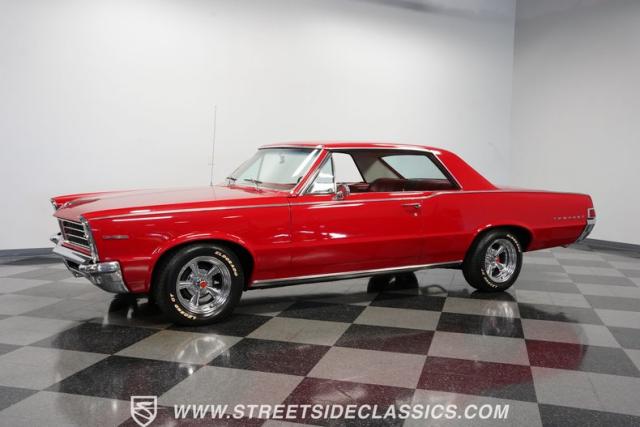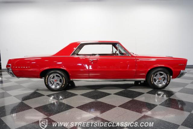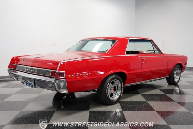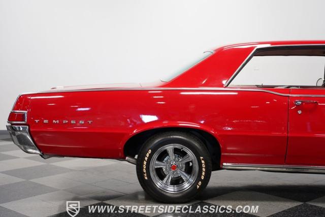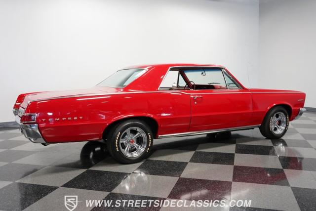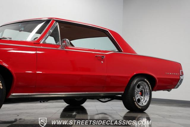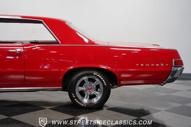 This 1965 Pontiac Tempest Custom showcases pure muscle car DNA. The Montero Red paint wraps a sleek two-door coupe body, its hardtop profile accentuated by stacked headlights and distinctive full-length trim. While it shares styling cues with its GTO cousin, unique details like the Tempest-specific grille set it apart. With 15-inch wheels and 215/65R15 tires, this Pontiac exudes a powerful stance demanding street respect.