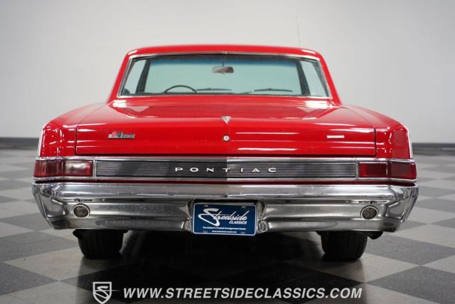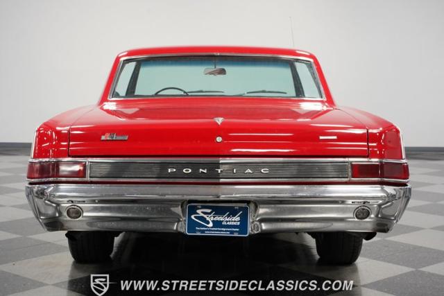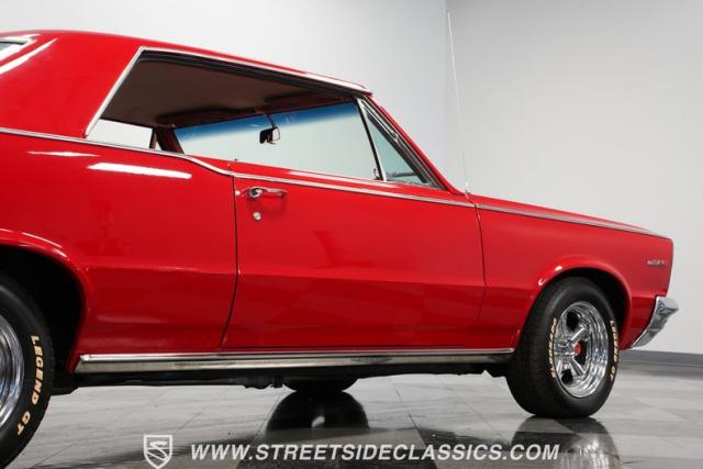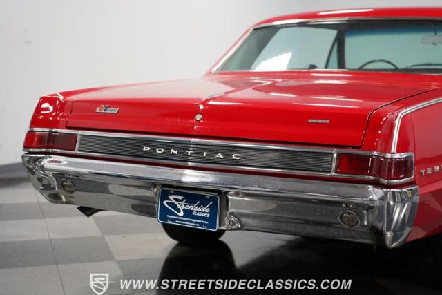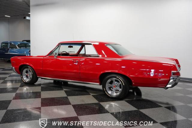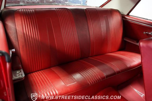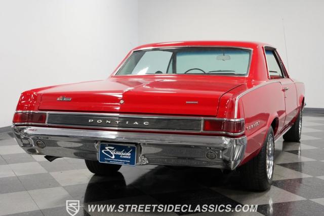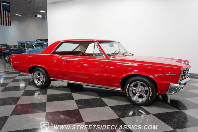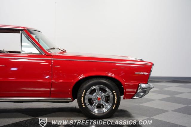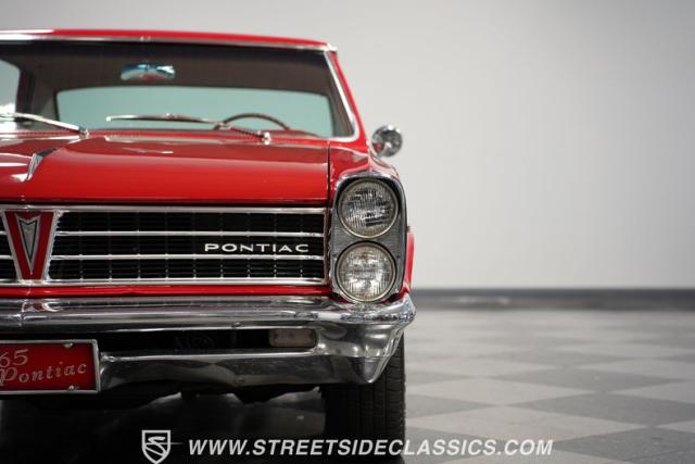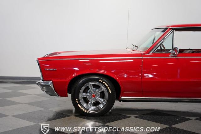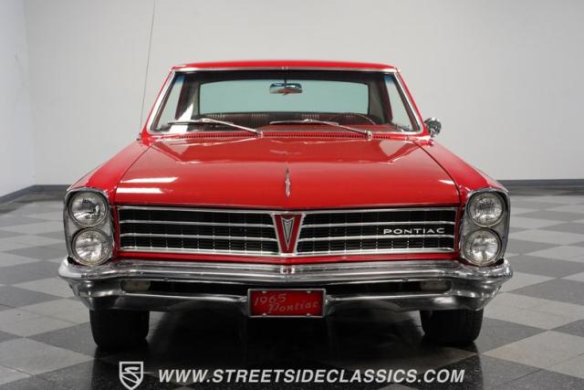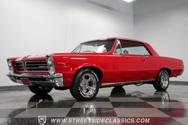 This 1965 Pontiac Tempest Custom showcases pure muscle car DNA. The Montero Red paint wraps a sleek two-door coupe body, its hardtop profile accentuated by stacked headlights and distinctive full-length trim. While it shares styling cues with its GTO cousin, unique details like the Tempest-specific grille set it apart. With 15-inch wheels and 215/65R15 tires, this Pontiac exudes a powerful stance demanding street respect.