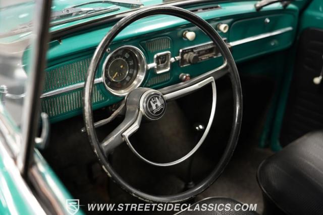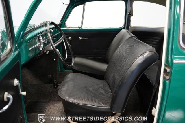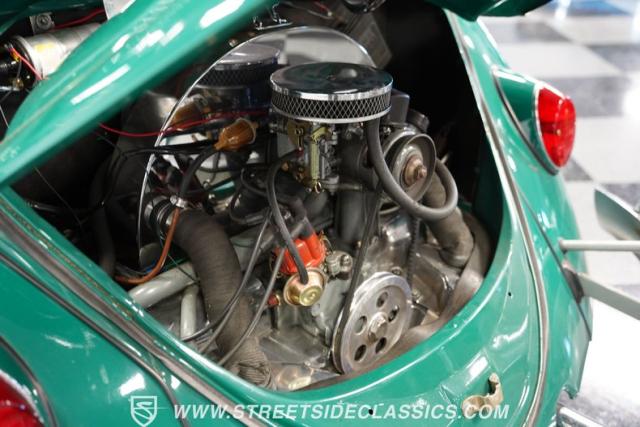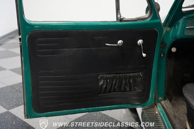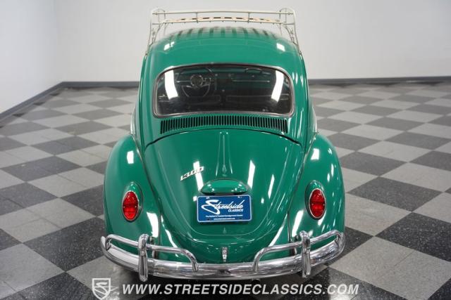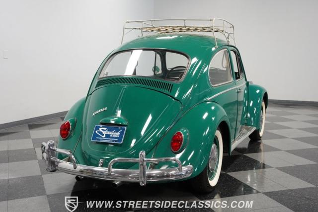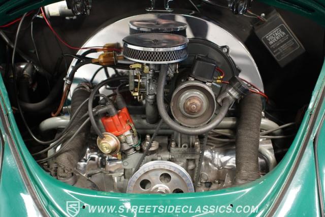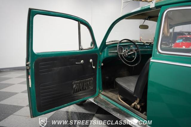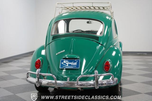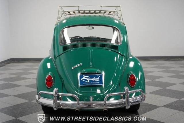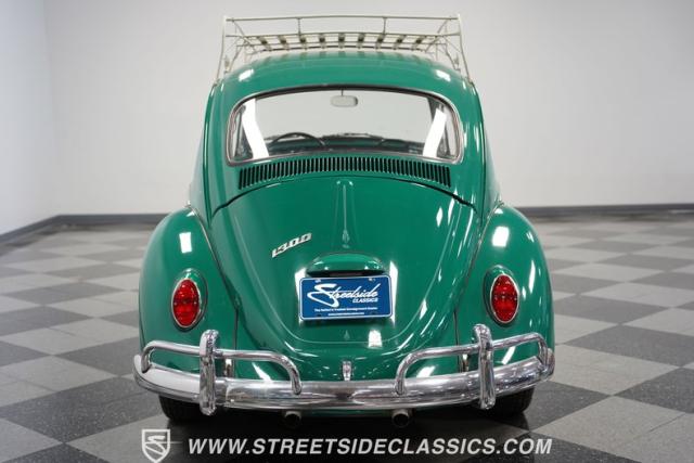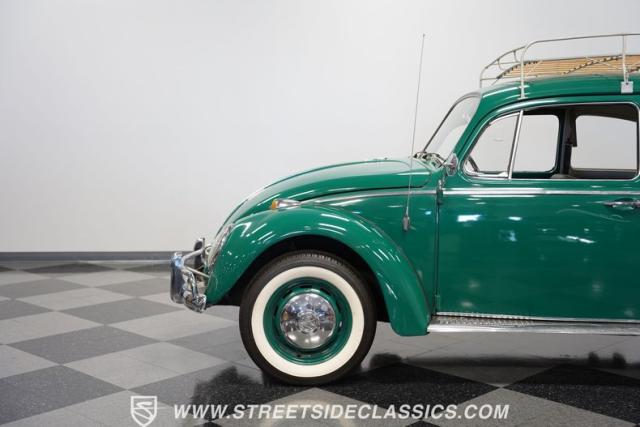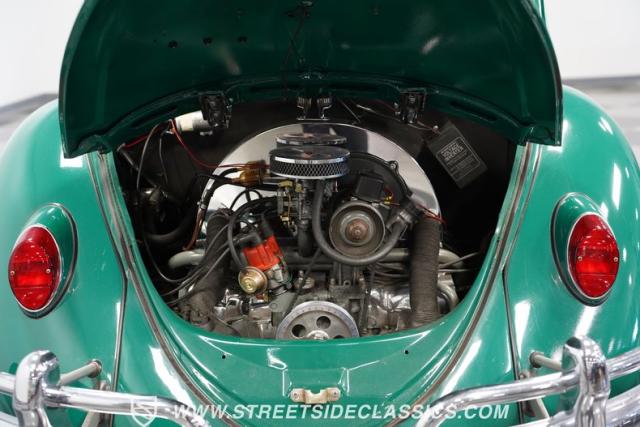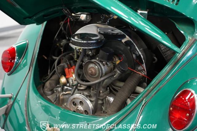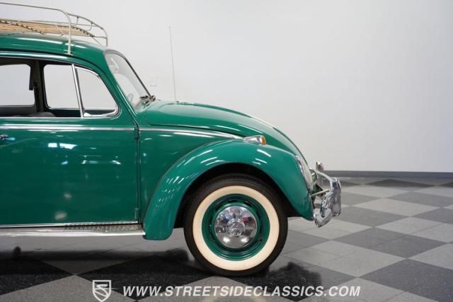 Striking in green with pinstriping that accentuates every curve, this 1966 Volkswagen Beetle is a testament to the enduring allure of these iconic cars. The chrome bumpers with overriders and front fender vents hark back to the Beetle\'s early years, while the roof luggage rack adds a touch of vintage practicality. With 165R15 Coker Classic tires wrapped around 15\" wheels, this bug has a period-correct stance and is ready to roll.