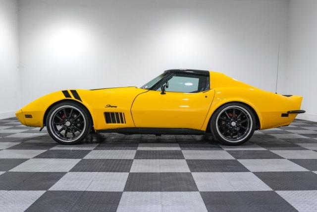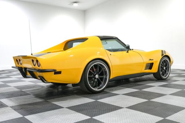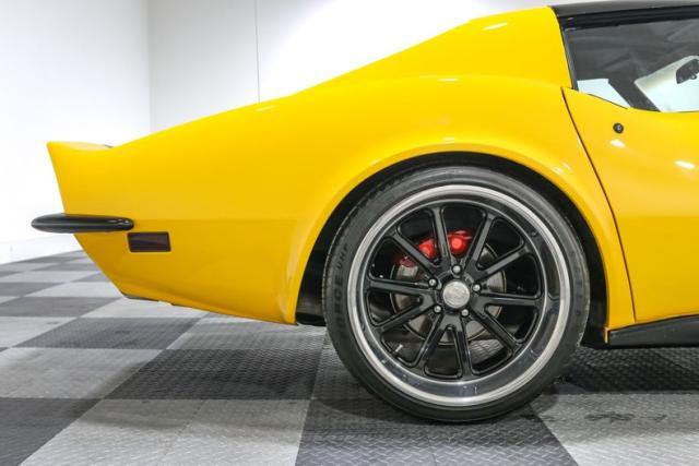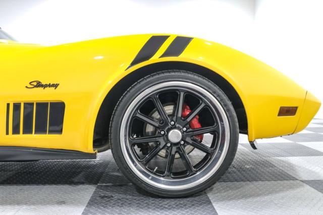 The body wears custom Yellow and Black paint that highlights every Coke bottle curve the C3 is famous for. T Tops let the sunshine in, while 20 inch US Mags wheels fill the fenders with an aggressive stance that plants this coupe firmly in pro touring territory. A steel rear bumper conversion sharpens the look and gives a nod to the classic chrome era that Corvette fans still love.