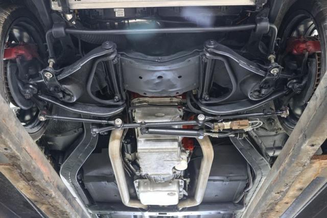 Inside, the black vinyl bucket seats wrap around a driver focused cockpit. A console shifter, center console, and Sparco steering wheel put you in command, while digital gauges bring modern precision to the vintage layout. Vintage Air heat and AC keep the cabin comfortable year round, and a Custom Autosound radio with Bluetooth lets you cruise with your own soundtrack.
