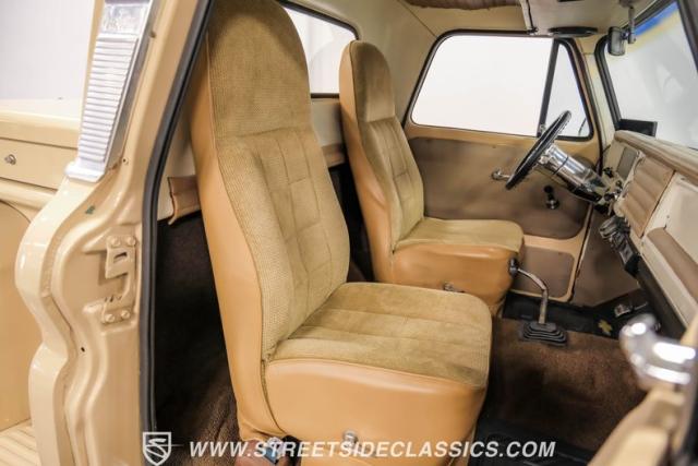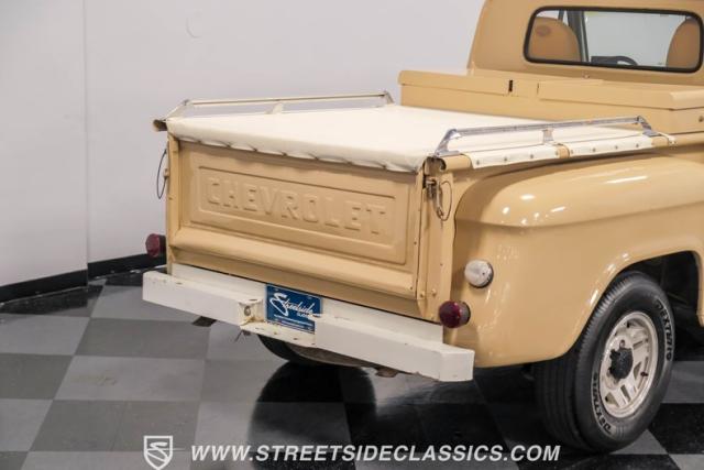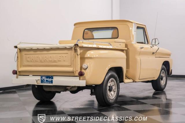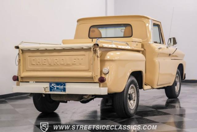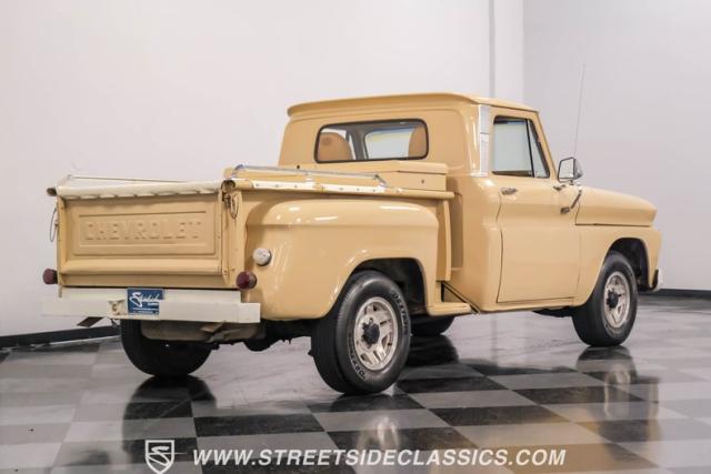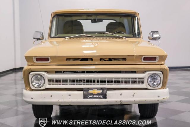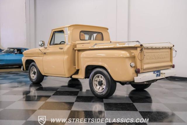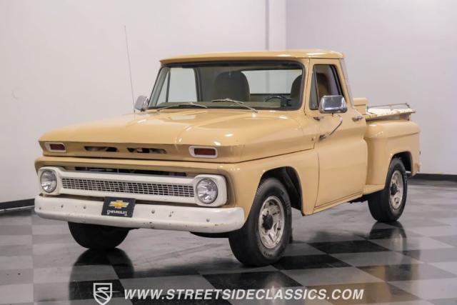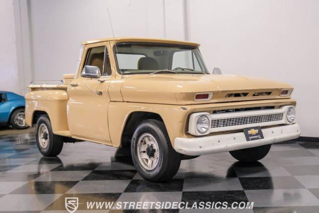 This 1966 Chevrolet C10 Custom truck rolls up with a tan exterior that\'s as rugged as the Texas landscape. The classic stepside body style showcases its utilitarian roots, while custom touches like the tonneau bed cover and toolbox add modern functionality. Riding on 15\" aluminum wheels with 235/75R15 tires, this C10 maintains its workhouse stance while offering improved road manners. Side rails provide easy access to the bed, making this pickup ready for work or play.