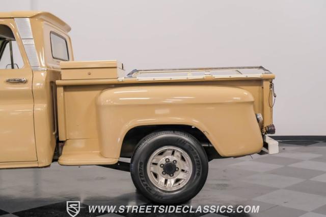 Under the hood, a 327 V8 engine provides plenty of muscle for this classic hauler. Mated to a 3-speed automatic transmission, this powertrain offers a balance of performance and drivability. Recent upgrades include a new compressor, aluminum radiator, electric fan, and Powermaster alternator, showcasing the owner\'s commitment to reliability. The dual exhaust system gives this C10 a proper V8 growl, while power steering ensures easy maneuverability. The solid axle rear with coil springs and shocks maintains the truck\'s workhorse capabilities.