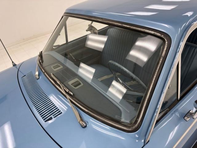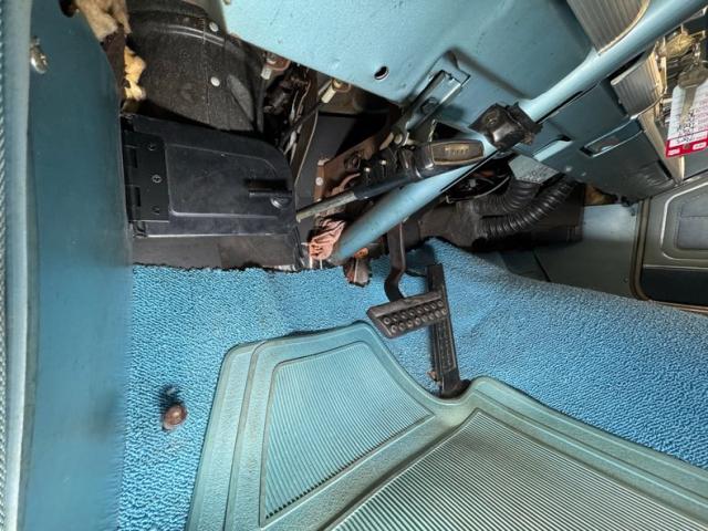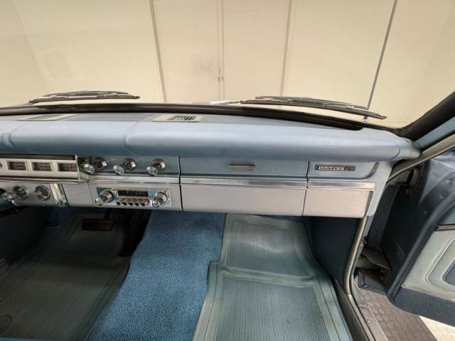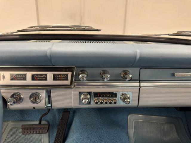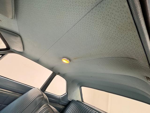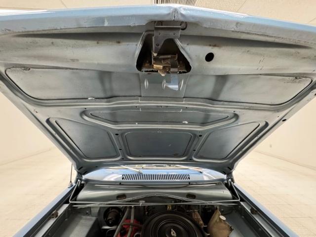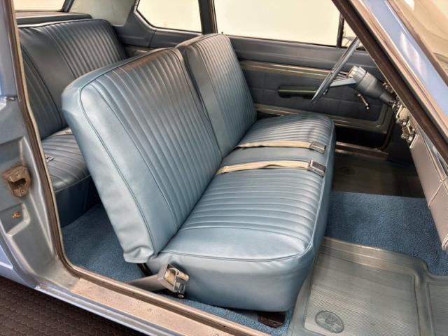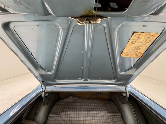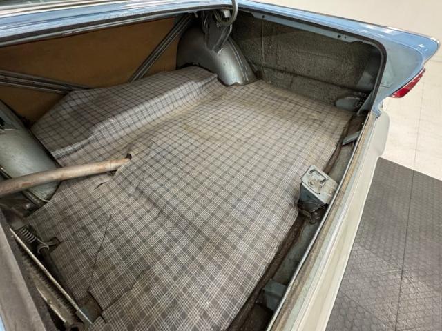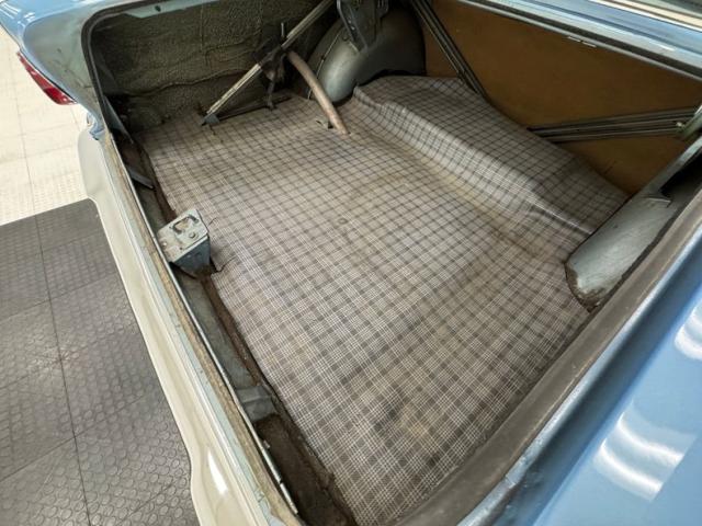 Looking much like it came from the factory with a simple blue padded dashboard, original steering wheel, amazing condition blue vinyl split bench seat, matching rear seat and amazing condition door panels. The simplistic dash looks like something from Lost in Space and contains gauges to monitor engine functions, a basic AM radio, standard heater controls and the original push button transmission selector. Blue twist pile carpet floods the floors, and a light blue headliner is up above, the carpet has protective blue vinyl mats the headliner does have some staining but remains high and tight. The surprisingly large trunk is covered with a period vinyl mat which shows definite usage.
