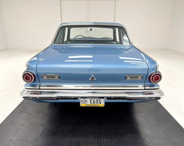 Drenched in the correct Medium Blue this car is clean and straight and quintessentially 60\'s with long, lean panels and a razor straight shoulder line. Good gaps abound on this car, and it wears good condition brightwork, badging and chrome. Large round bezels at the front of each fender hold a headlight at either side and at the rear of the car tiny fins, a tribute to days of yore, hover above a similar design with simple circular brake lights. A grille described as \"electric razor\" form greets you from the front DODGE lettering are spaced to allow air to continue to flow to the radiator. The trunk lid not only holds the reverse lights but also a fratzog, the triple arrow logo, with 270 in the center, a call out to the trim line of this car. 14-inch Mopar Rally wheels are on all corners and are wrapped in 195/70R14s. Imperfections include some patina of the windshield frame and emblems, and one small ding in the body.