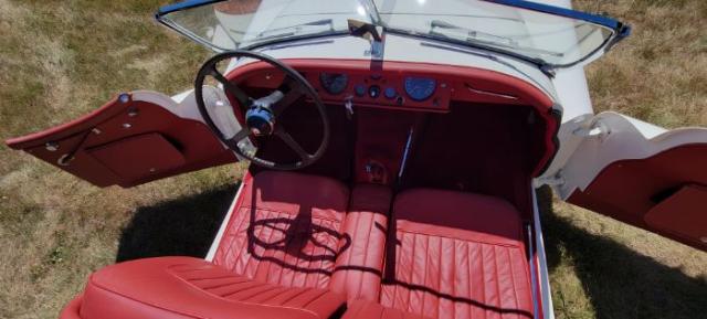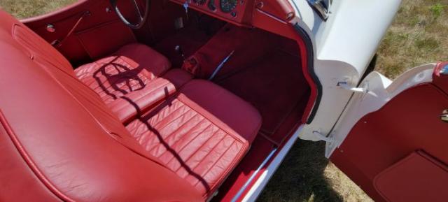 1954 Jaguar XK 120SE comes from a family owned labor of love between a grandfather, a father and his two sons. The body-off restoration of this beautiful Jaguar started back in 2009 and it was completed in 2011. It was a very solid car to start with when it was purchased back in 1978 in the state of Iowa. It was brought back to Indiana where it resides now. As you can see from the restoration pictures to current day, this XK 120SE has been restored with the utmost attention to detail and originality. The owner has accumulated well over $55,000.00 in parts (mainly ordered from SNG Barratt) and also in body and paint work. There\'s a very long list, but just about everything on the car is new or the original part has been reconditioned. The 3.4 liter, DOHC straight six cylinder engine has never been rebuilt and is showing 48,591 original miles. It runs beautifully with no issues. The 4 speed manual transmission and the rear end both have been professional rebuilt to factory specs by Pettitt Professional Auto in Ohio. The suspension has been completely gone through with all new parts. The shocks are new as well. Electrically, all the original gauges have been beautifully restored to near perfection. The wiring harness has also been replaced with new. The generator has been rebuilt along with an upgraded new starter. All brake lines and fuel lines are new. Driveshaft and U-Joints are also new. The manual steering is nice and tight because the gearbox was completely rebuilt. The Dayton wheels are new along with all wheel cylinders and associated brake parts. The tires are relatively new with only 3,000 miles on them. The red interior leather and the beautiful red carpeting are all new from SNG Barratt. The exhaust is new stainless steel and it sounds very nice. The engine bay is highly detailed back to a new and original appearance which also includes a new aluminum radiator. The 10 year old paint finish of the original Jaguar Cream