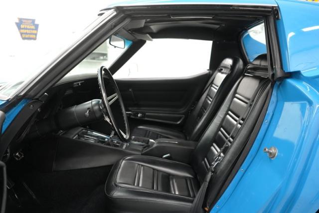THIS VEHICLE IS LOCATED IN OUR PA. SHOWROOM, FREE SHIPPING AND WARRANTY !!!!! 350cid Small Block Chevrolet Engine. Muncie M22 4-Speed Manual Transmission. Power Brakes. Front Disc Brakes. Rear Disc Brakes. 4 Wheel Disc Brakes. 15 Inch Wheels. Front Tires: 225/70/15. Rear Tires: 225/70/15. Cooper Cobra Radial GT Tires. 3.50 Gear Ratio. POSI Rear End. Stock Cast Style Intake. Holley 4 Barrel Carburetor. Electric Choke. HEI Distributor. Mechanical Fuel Pump. Stock Style Ignition. Steel Radiator. 5 Blade Cooling Fan. Blue Exterior. T-Tops. Chrome Front & Rear Bumpers. Driver & Passenger Side Mirrors. Bright Rocker Trim. Flip Up Headlights. Black Vinyl Interior. Bucket Seats. Rear Luggage Rack. Black Door Panels. Black Carpeting. Seat Belts. Factory Dash. Factory Gauges. 2 1/2\" Dual Exhaust. MagnaFlow Mufflers. Front Sway Bar. Finned Aluminum Valve Covers. Moroso 8mm Plug Wires. Shorty Headers. Black Front Air Dam. T-Top Storage Bags.