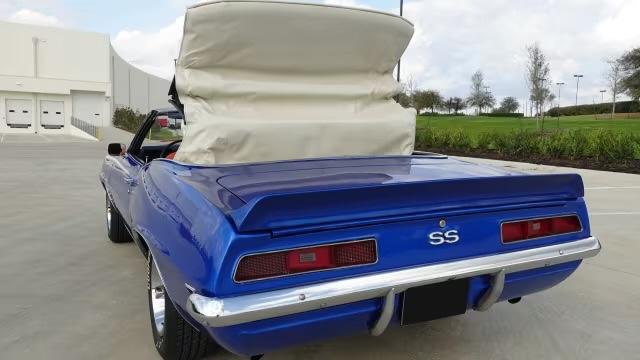 1969 Chevrolet Camaro New 350 CI V-8 crate engine4-speed manual transmissionPower steeringPower-operated convertible topNew front suspensionHeadersAluminum intakeSS wheels with Cooper White letter tiresBucket seatsFront and rear spoilersRear bumper guardsCowl hoodAuxiliary under-dash gauges